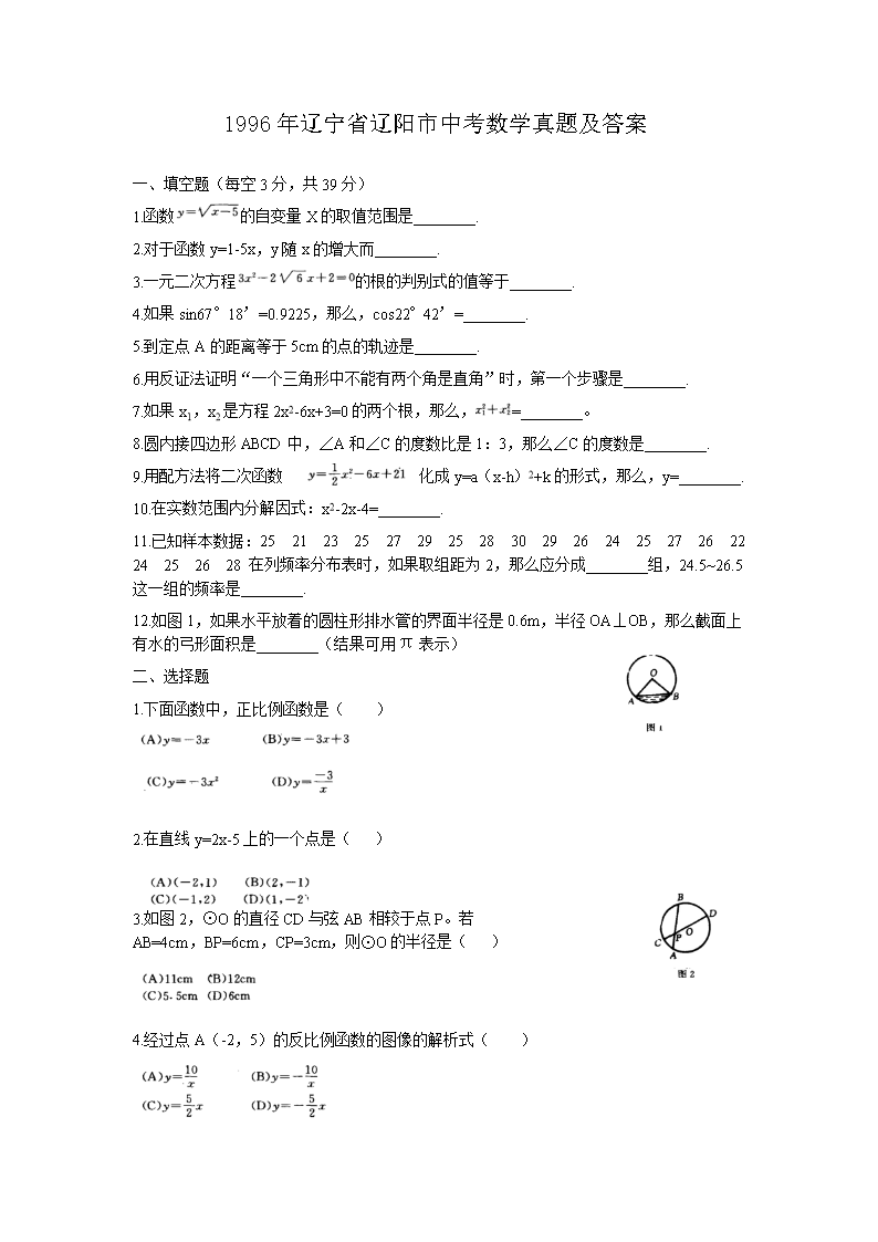 【文档名称】 1996年辽宁省辽阳市中考数学真题及答案(Word版).doc