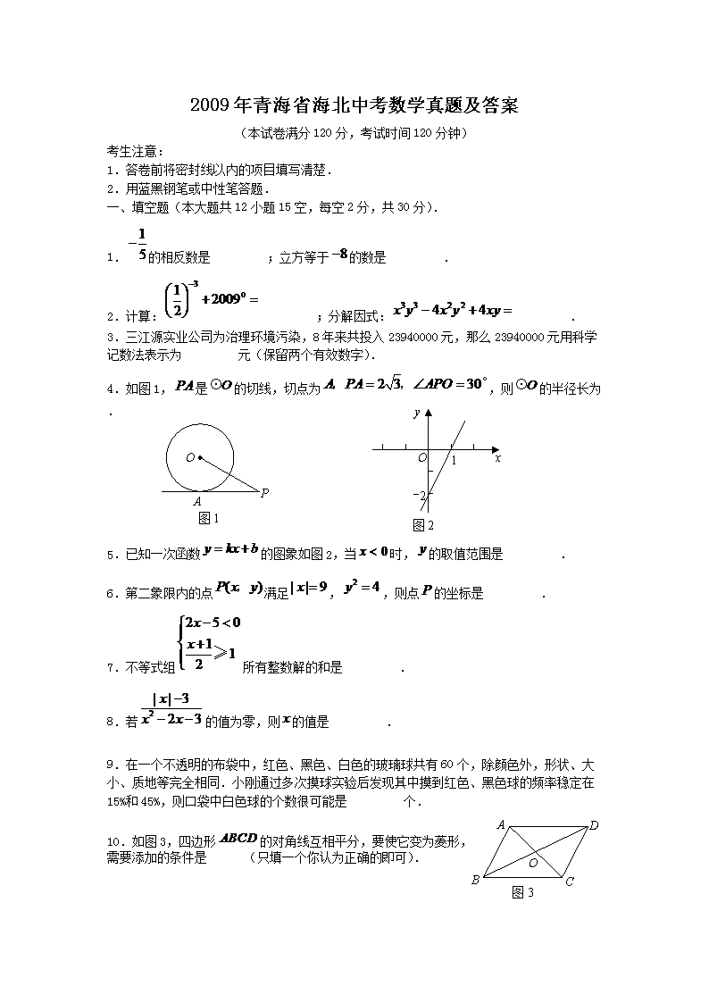 【文档名称】 2009年青海省海北中考数学真题及答案(Word版).doc