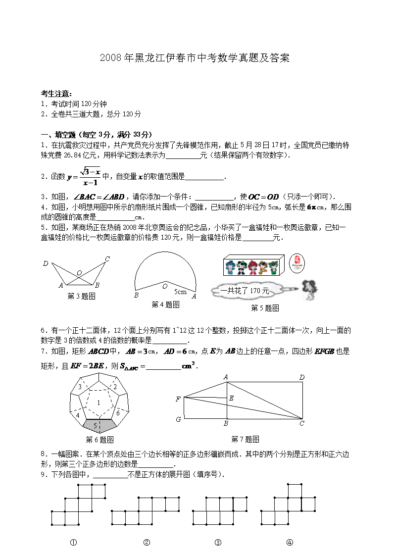 【文档预览】 无忧考网整理发布2008年黑龙江伊春市中考数学真题及答案(Word版),前五页预览如下: