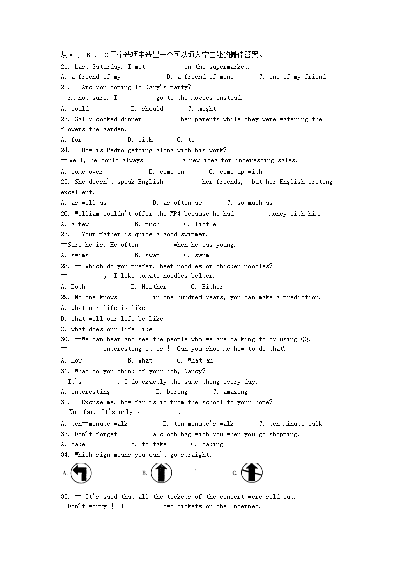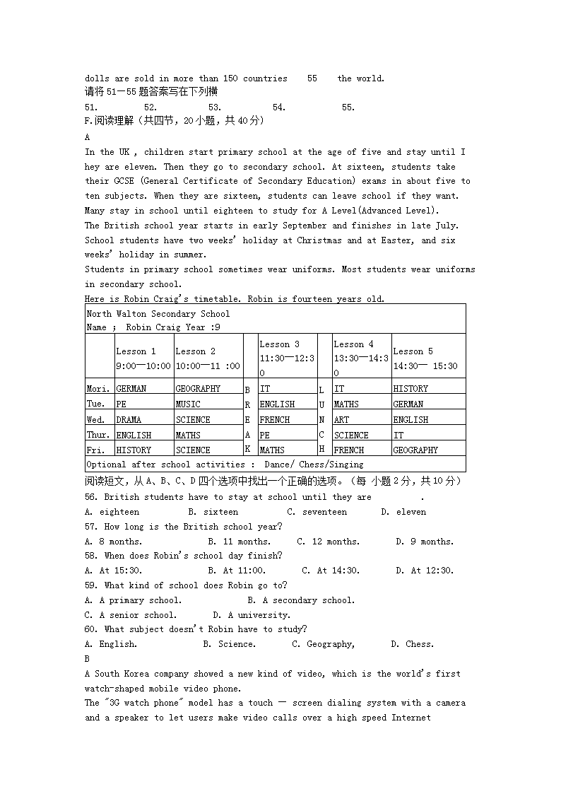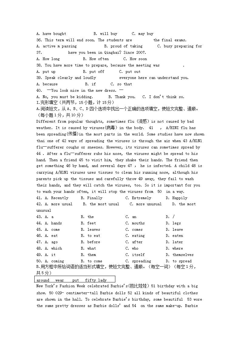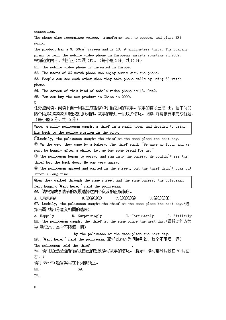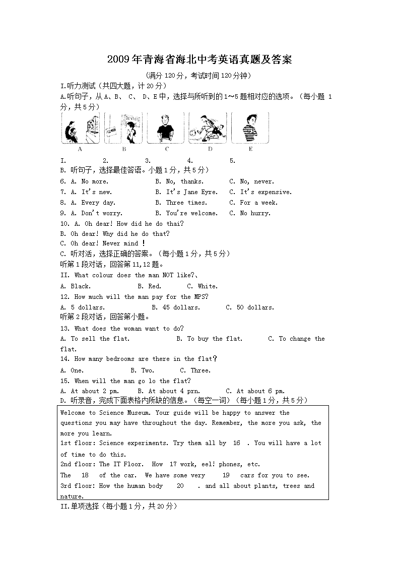 【文档预览】 无忧考网整理发布2009年青海省海北中考英语真题及答案(Word版),前五页预览如下: