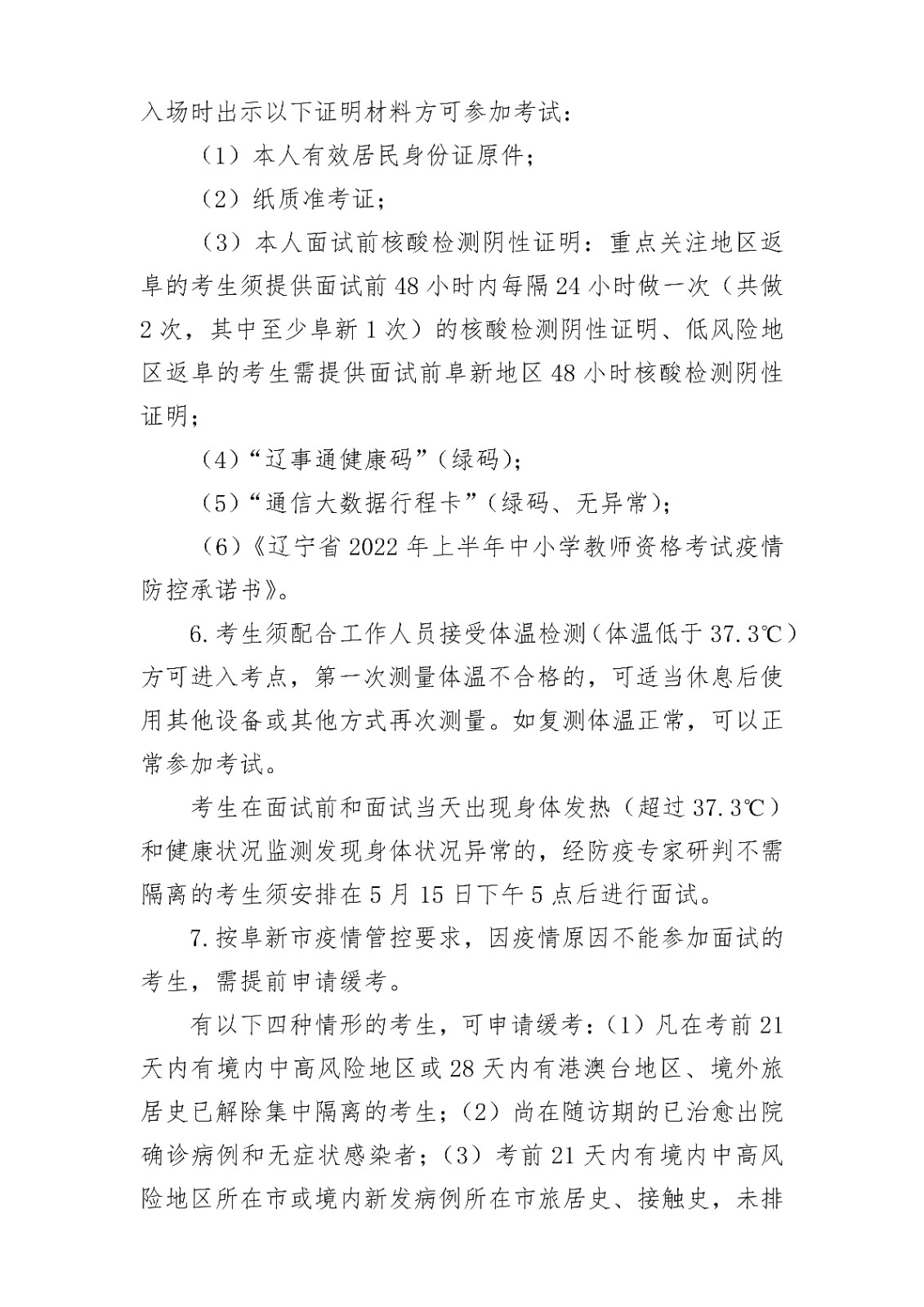 辽宁阜新2022上半年教师资格面试考生防疫须知(二)