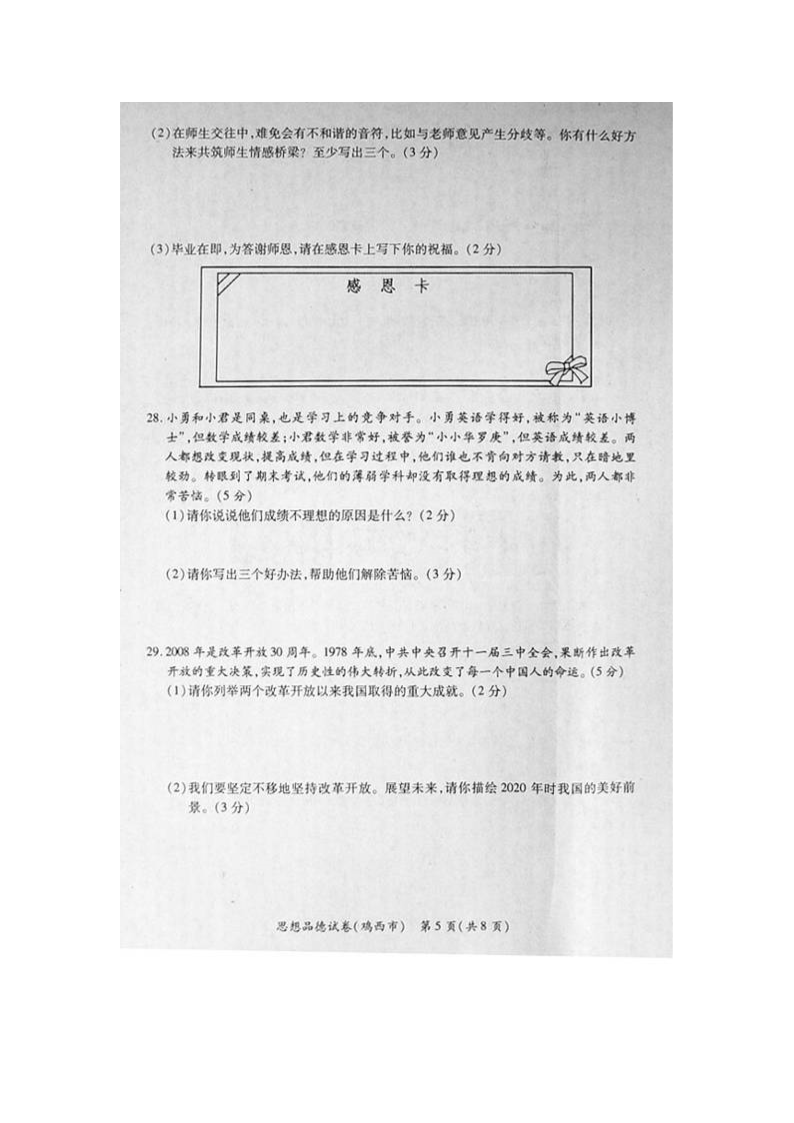 【文档预览】 无忧考网整理发布2008年黑龙江伊春中考思想品德真题及答案(图片版),前五页预览如下: