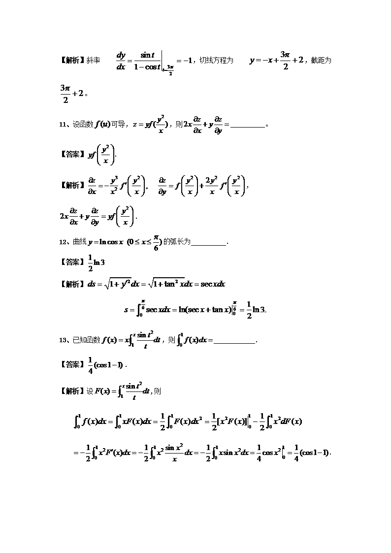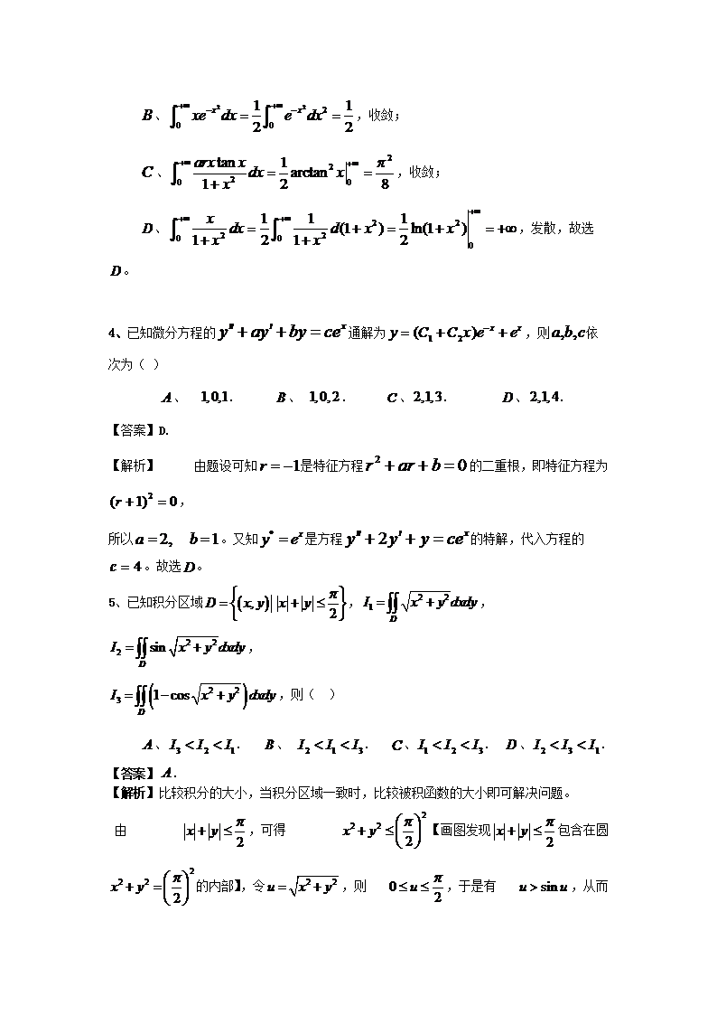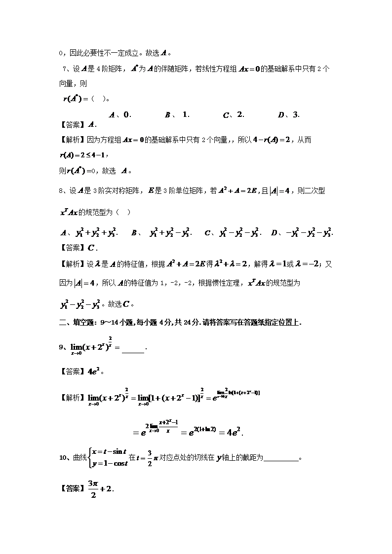 【文档名称】 2019山东考研数学二真题及答案(Word版).doc