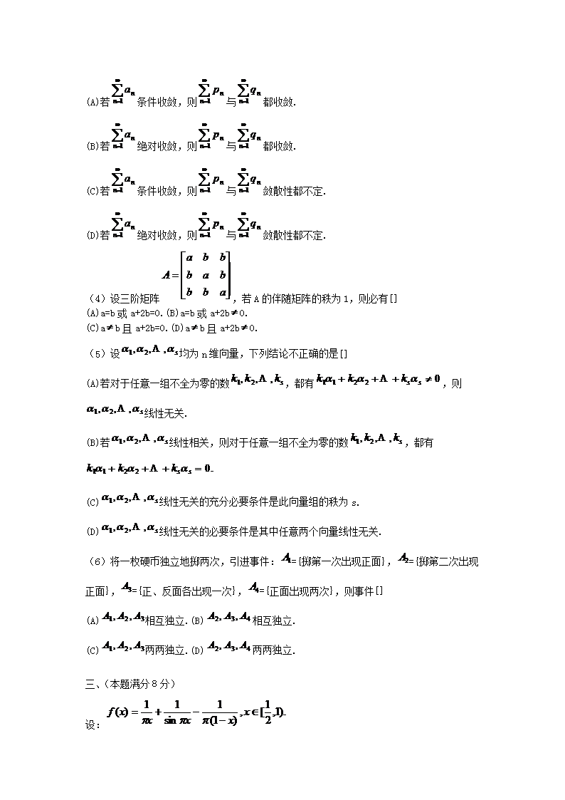 【文档预览】 无忧考网整理发布2019山东考研数学三真题及答案(Word版),前五页预览如下: