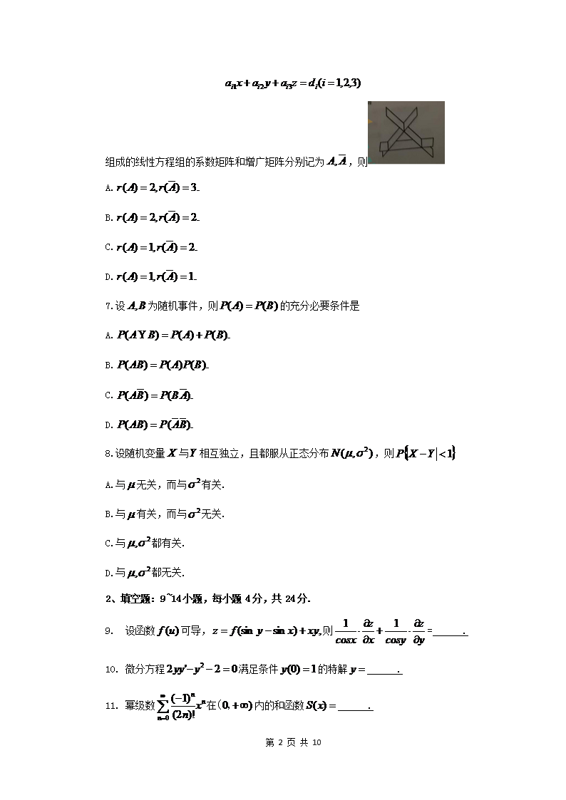 【文档名称】 2019山东考研数学一真题及答案(Word版).doc