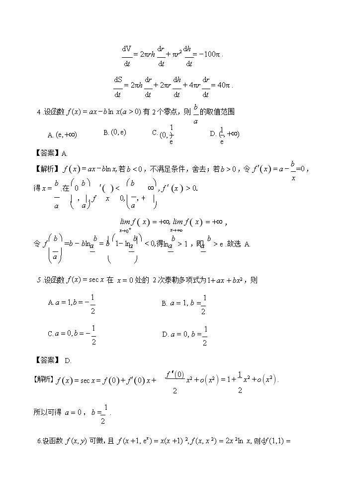 【文档名称】 2021山东考研数学二真题及答案(Word版).doc