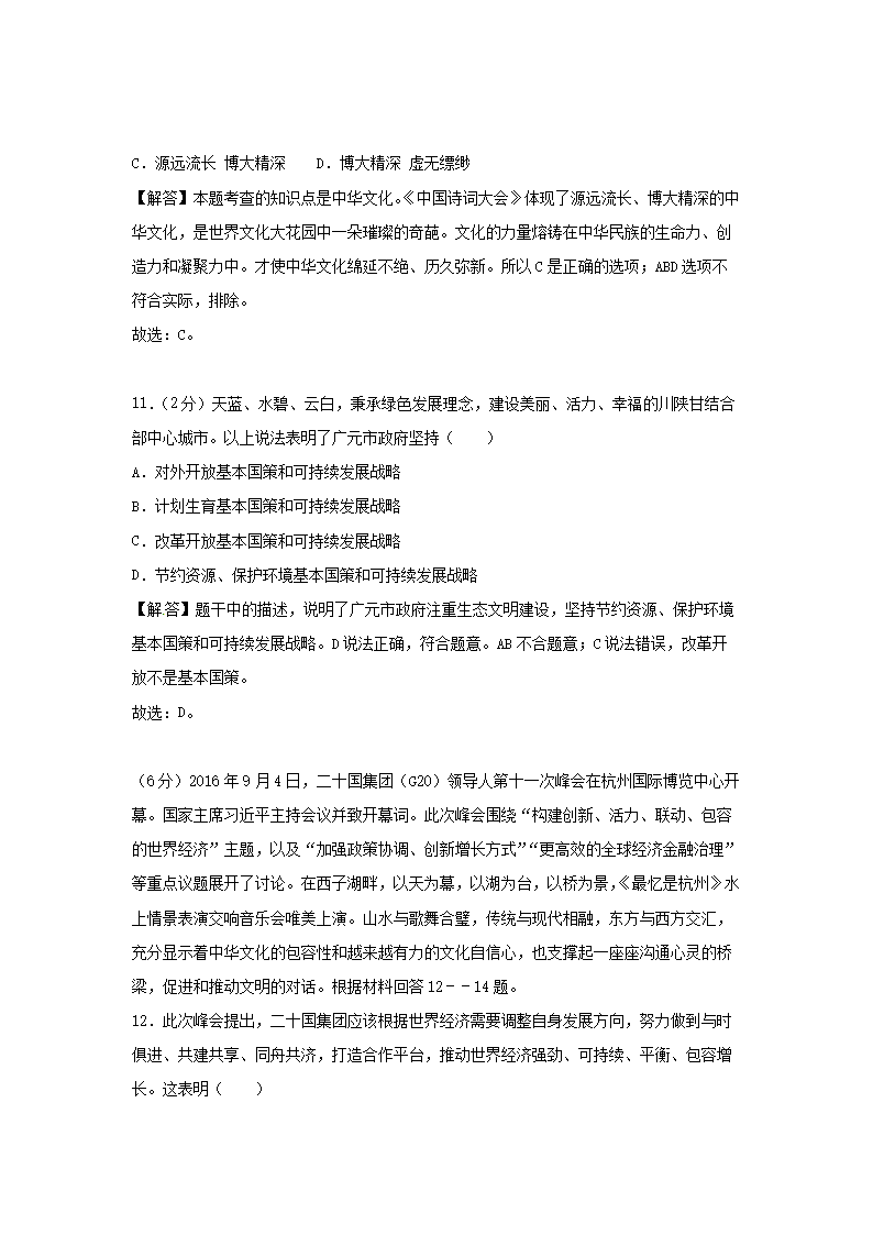 【文档名称】 2017年四川省广元市中考政治真题及答案(Word版).doc