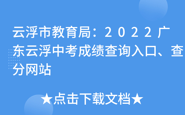【#中考# #云浮市教育局:2022广东云浮中考成绩查询入口、查分网站#】®无忧考网中考频道小编提醒参加2022广东云浮中考考生,2022年广东云浮中考成绩查询入口开通后,考生可登录中考查分网站云浮市教育局(http://www.yunfu.gov.cn/jyj)或点击以下链接进入广东云浮中考成绩查询入口网站。具体如下: