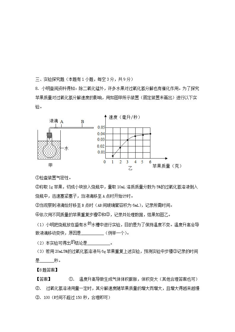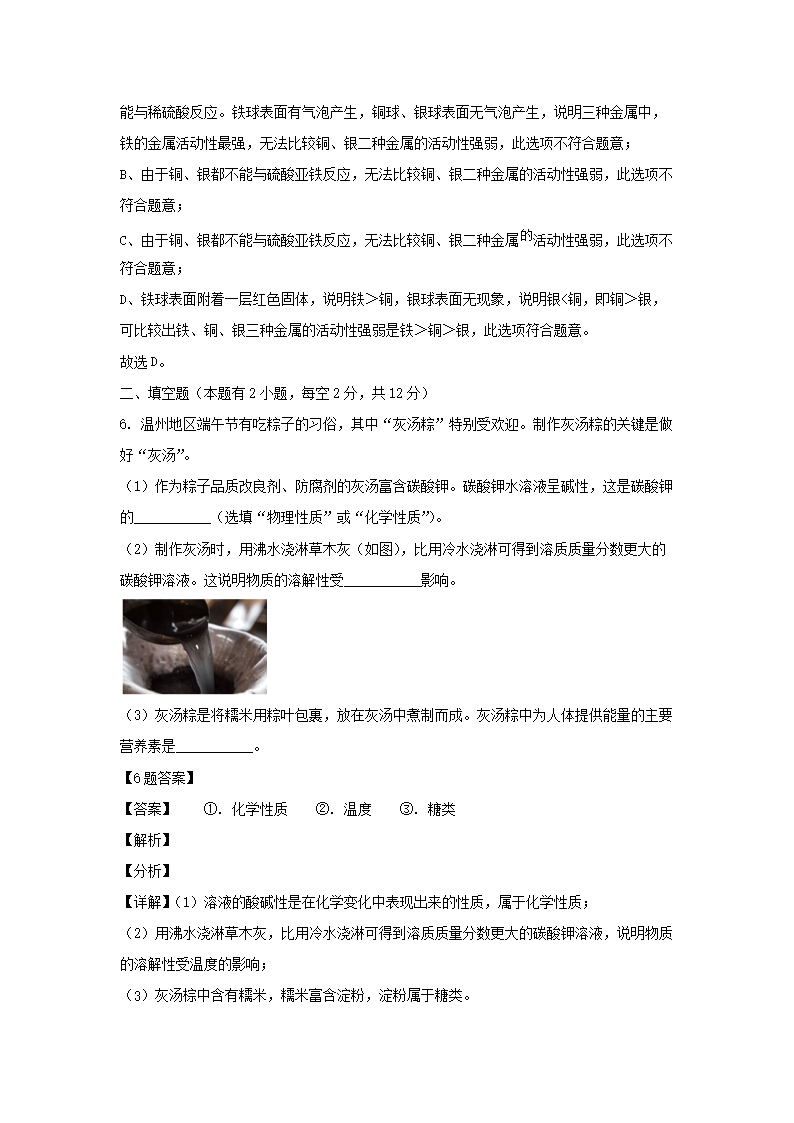 【文档名称】 2021浙江省温州市中考化学真题及答案(Word版).doc