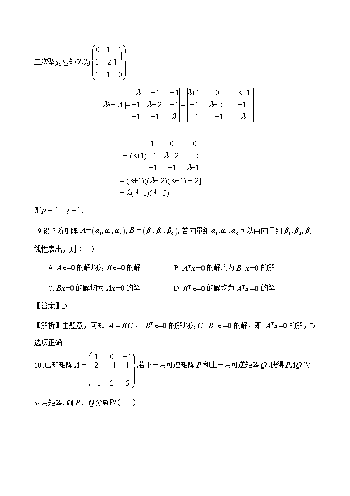 【文档名称】 2021江西考研数学二真题及答案(Word版).doc