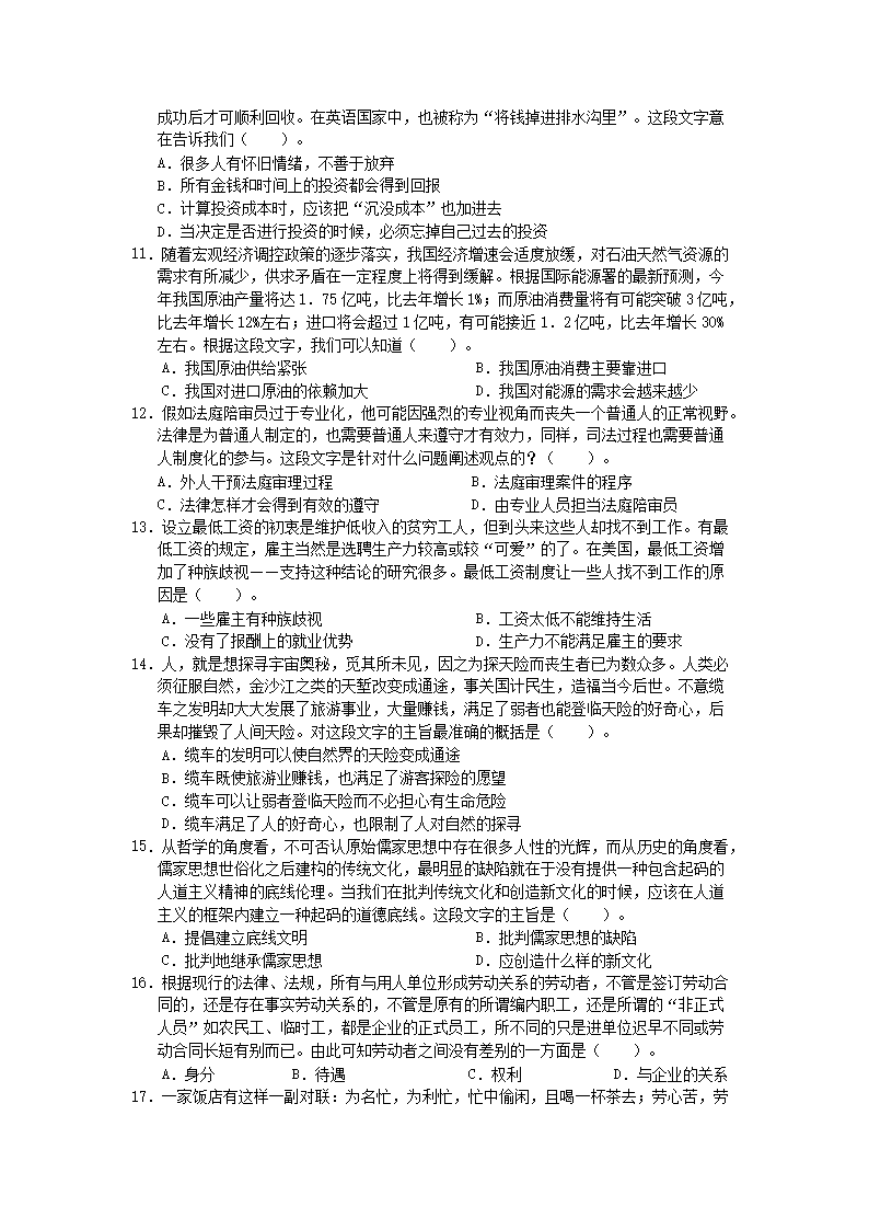 【文档预览】 无忧考网整理发布2005年北京国家公务员行测考试真题及答案-A类(Word版),前五页预览如下: