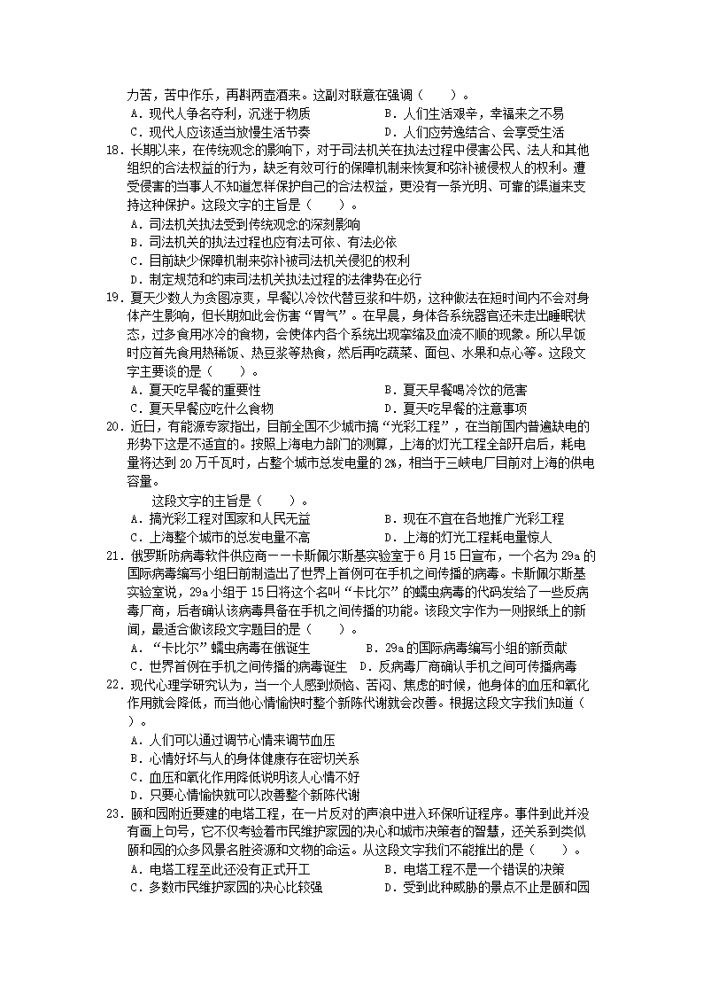 【文档名称】 2005年北京国家公务员行测考试真题及答案-A类(Word版).doc