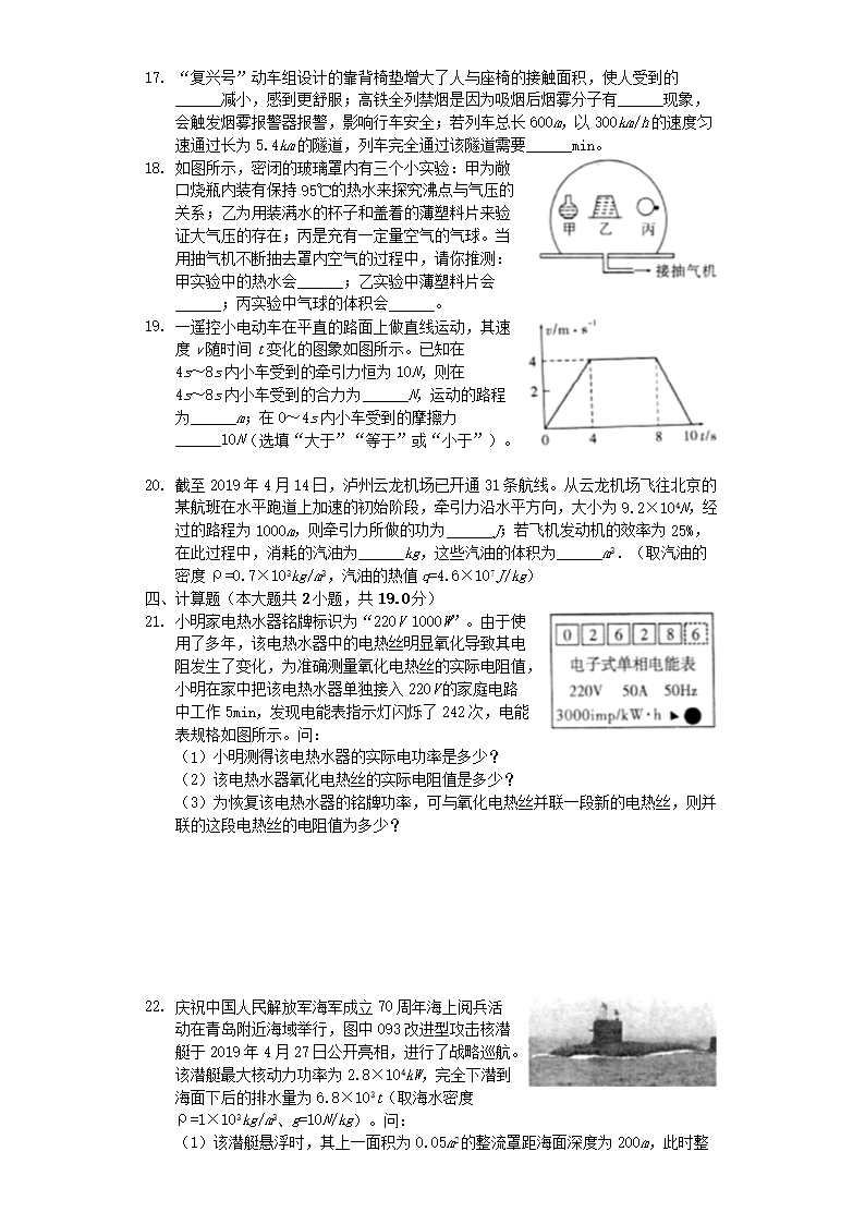 【文档名称】 2019年四川省泸州市中考物理真题及答案(Word版).doc