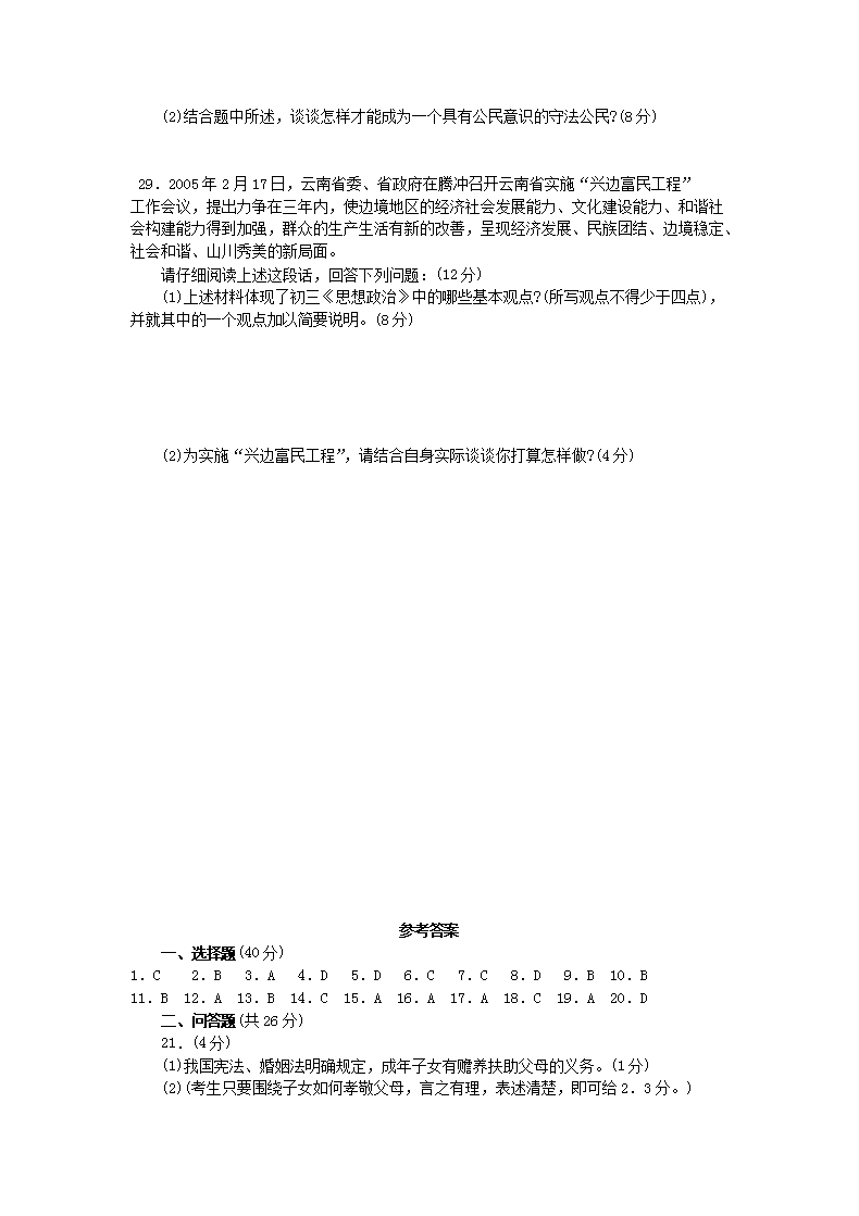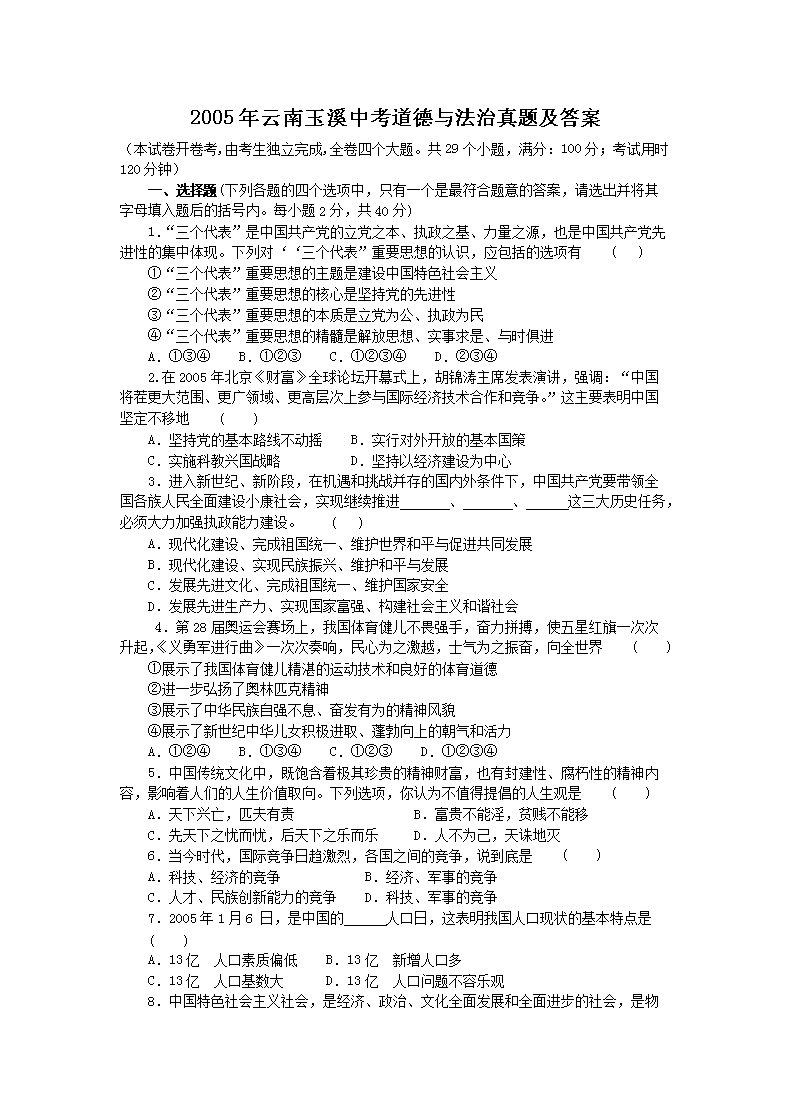 【文档名称】 2005年云南玉溪中考道德与法治真题及答案(Word版).doc
