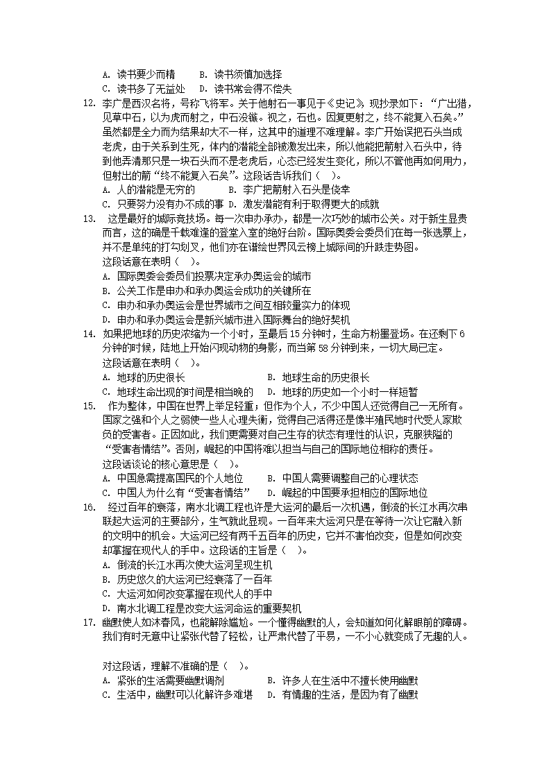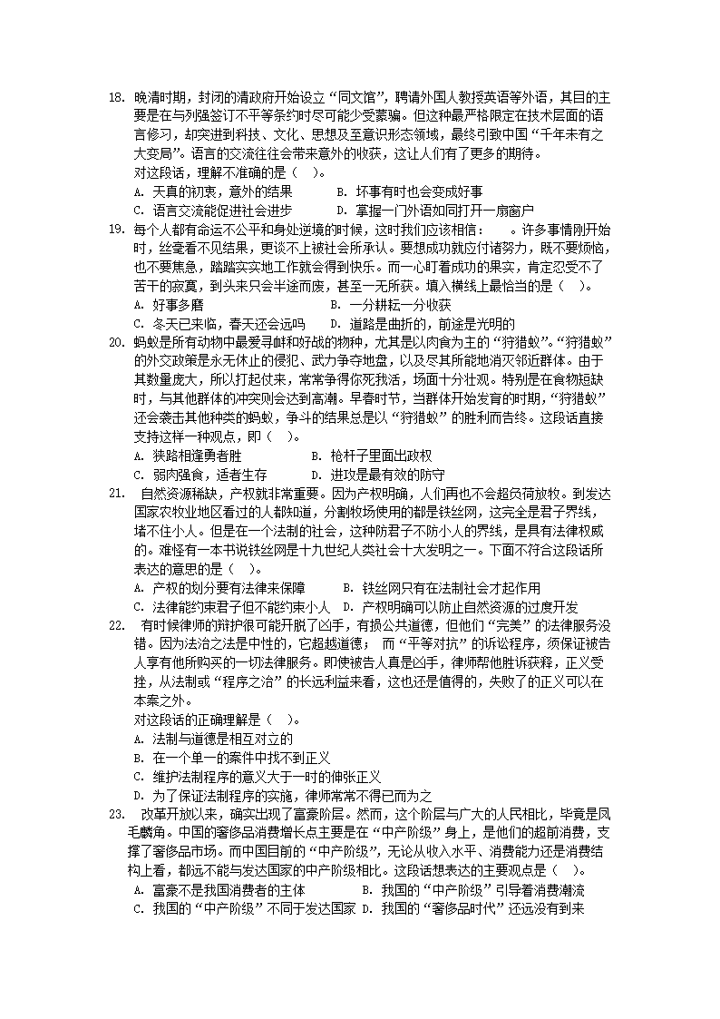 【文档名称】 2006年北京国家公务员行测考试真题及答案-A类(Word版).doc