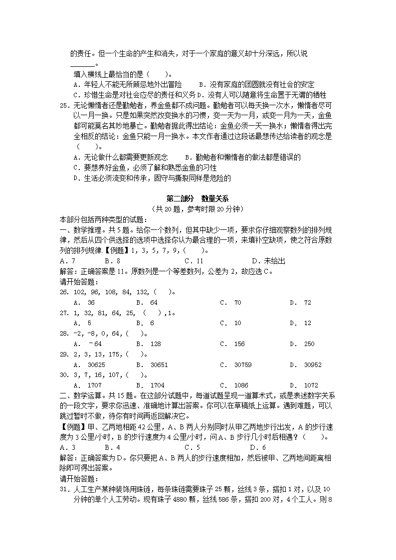 【文档预览】 无忧考网整理发布2006年海南国家公务员行测考试真题及答案-B类(Word版),前五页预览如下: