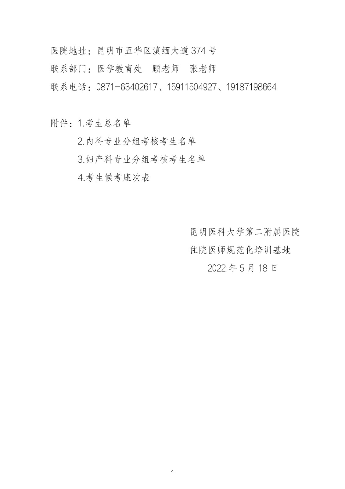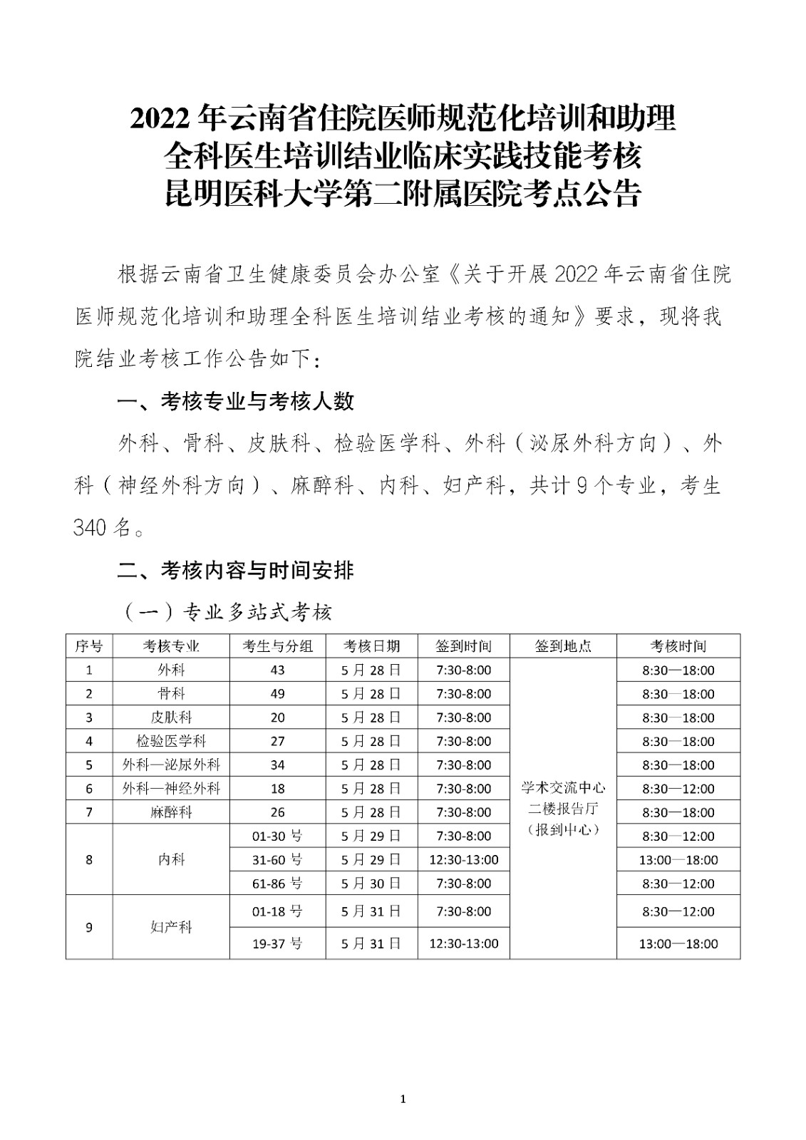 2022年云南医科大学第二附属医院住院医师培训和助理全科医生培训临床实践技能考点公告