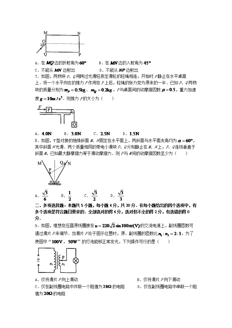 【文档名称】 2021年海南普通高中学业水平选择性考试物理真题及答案(Word版).doc