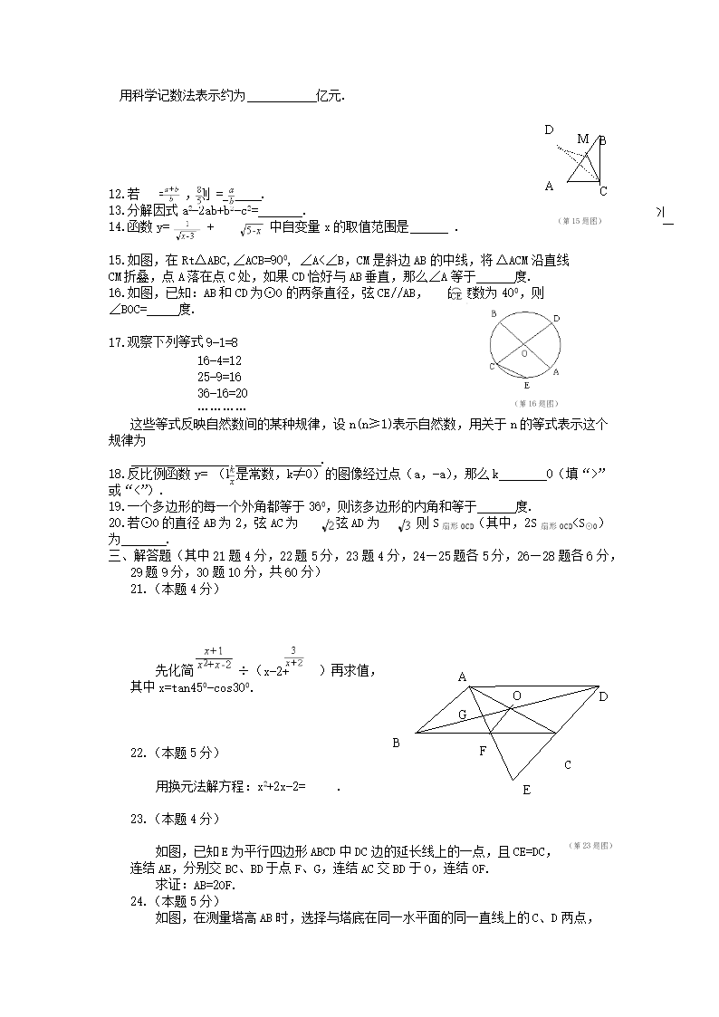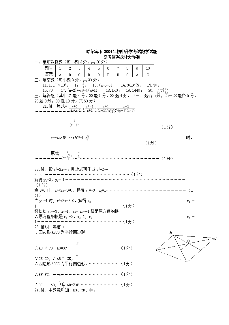 【文档预览】 无忧考网整理发布2004年黑龙江哈尔滨市中考数学真题及答案(Word版),前五页预览如下: