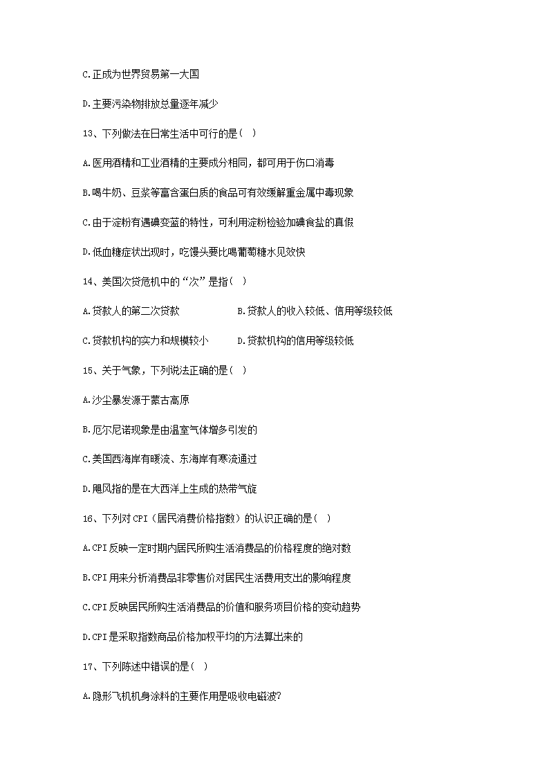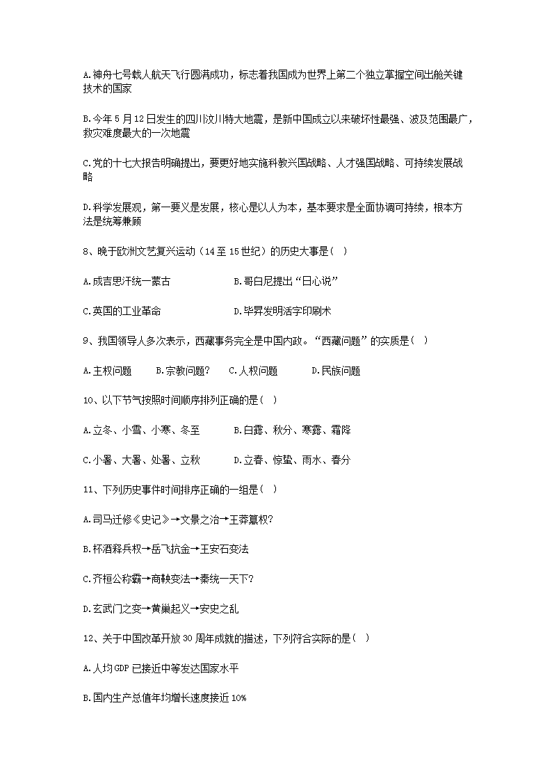 【文档名称】 2009年四川国家公务员行测考试真题及答案(Word版).doc
