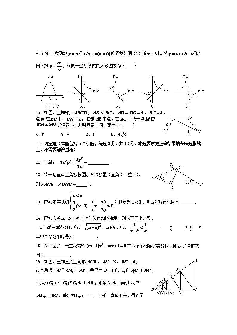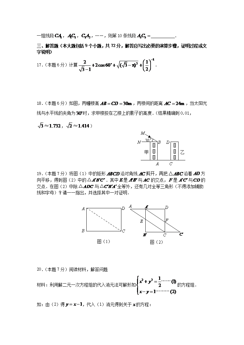 【文档预览】 无忧考网整理发布2008年内蒙古呼和浩特市中考数学真题及答案(Word版),前五页预览如下: