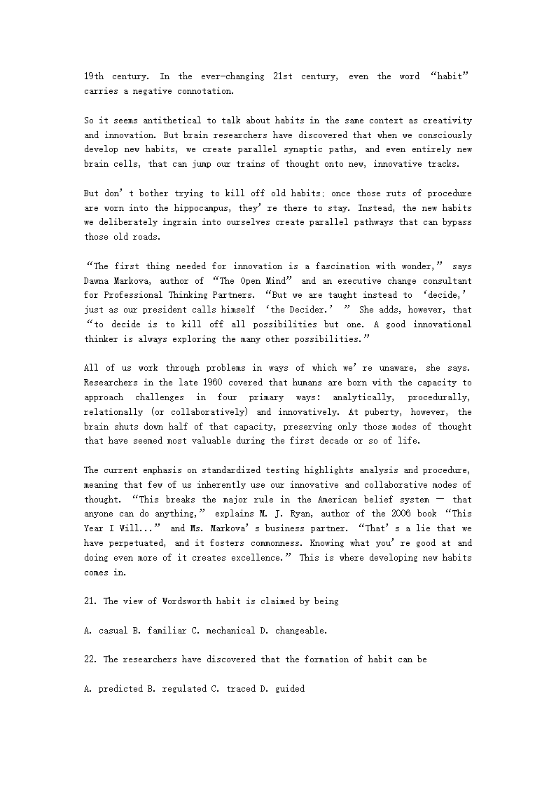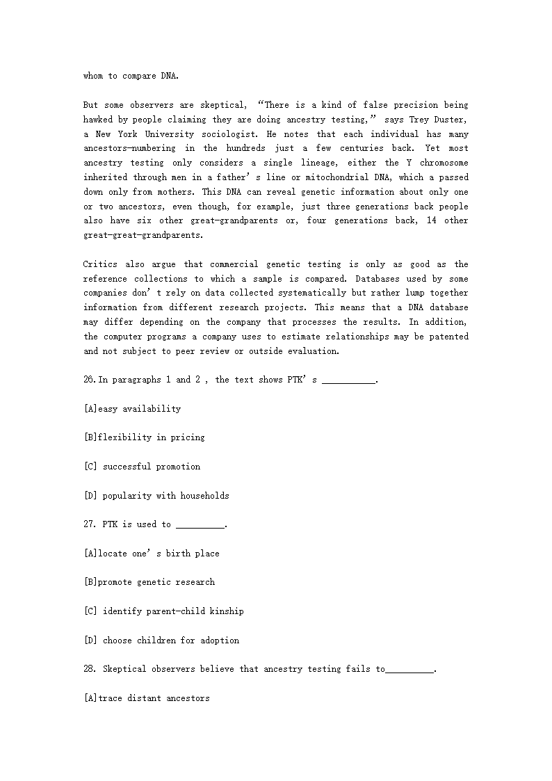 【文档名称】 2009北京考研英语一真题及答案(Word版).doc
