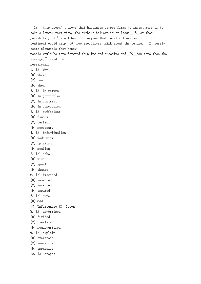 【文档名称】 2016北京考研英语二真题及答案(Word版).doc