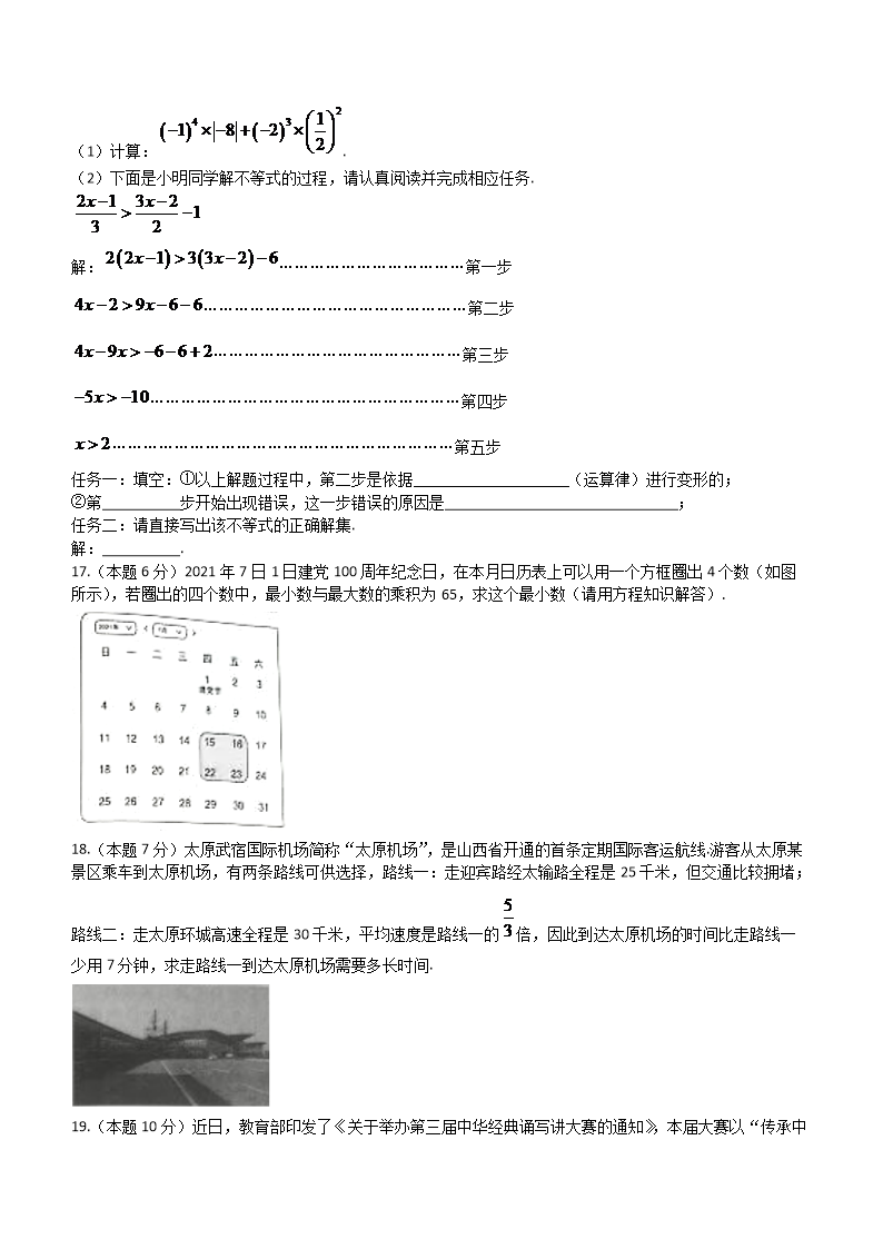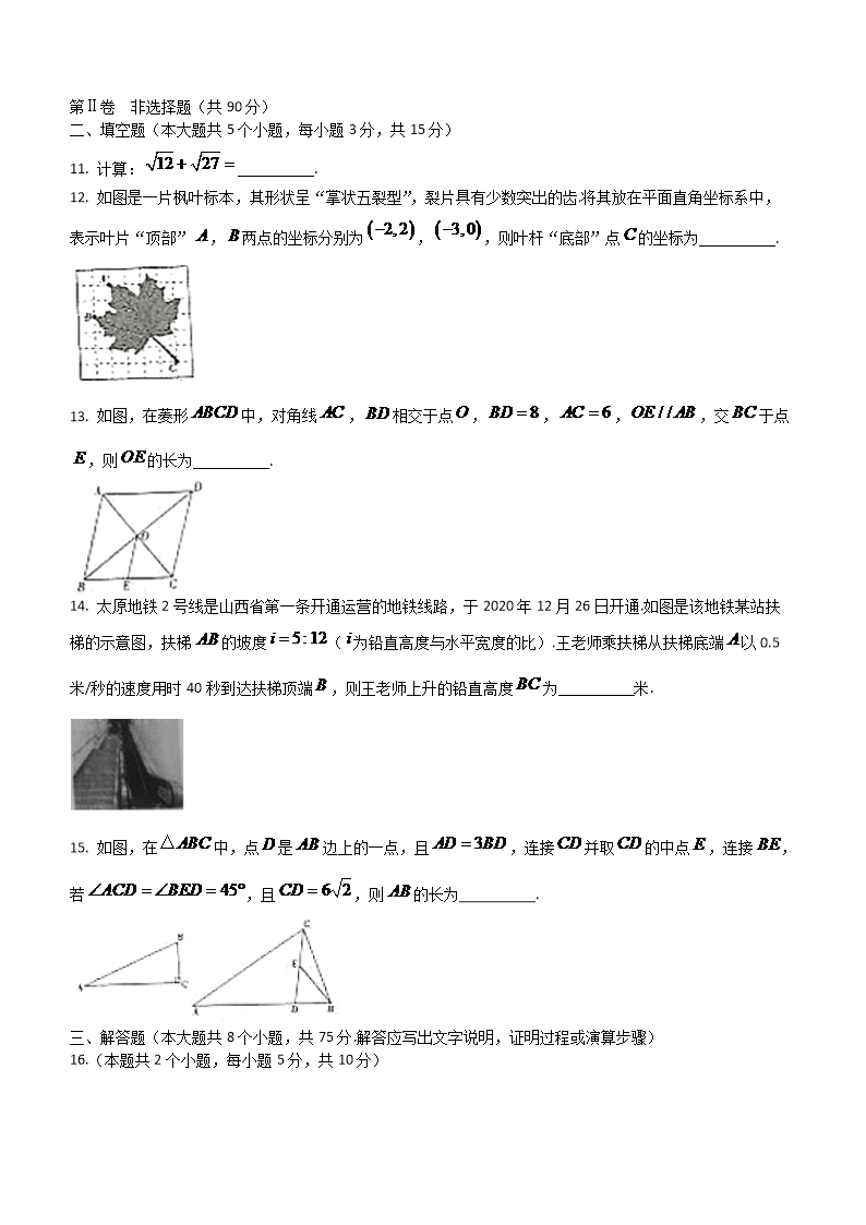 【文档名称】 2021年山西晋城中考数学真题及答案(Word版).doc