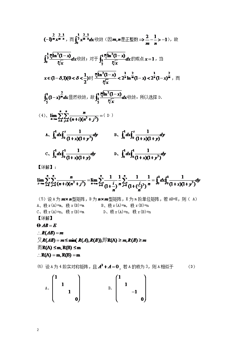 【文档预览】 无忧考网整理发布2010北京考研数学一真题及答案(Word版),前五页预览如下: