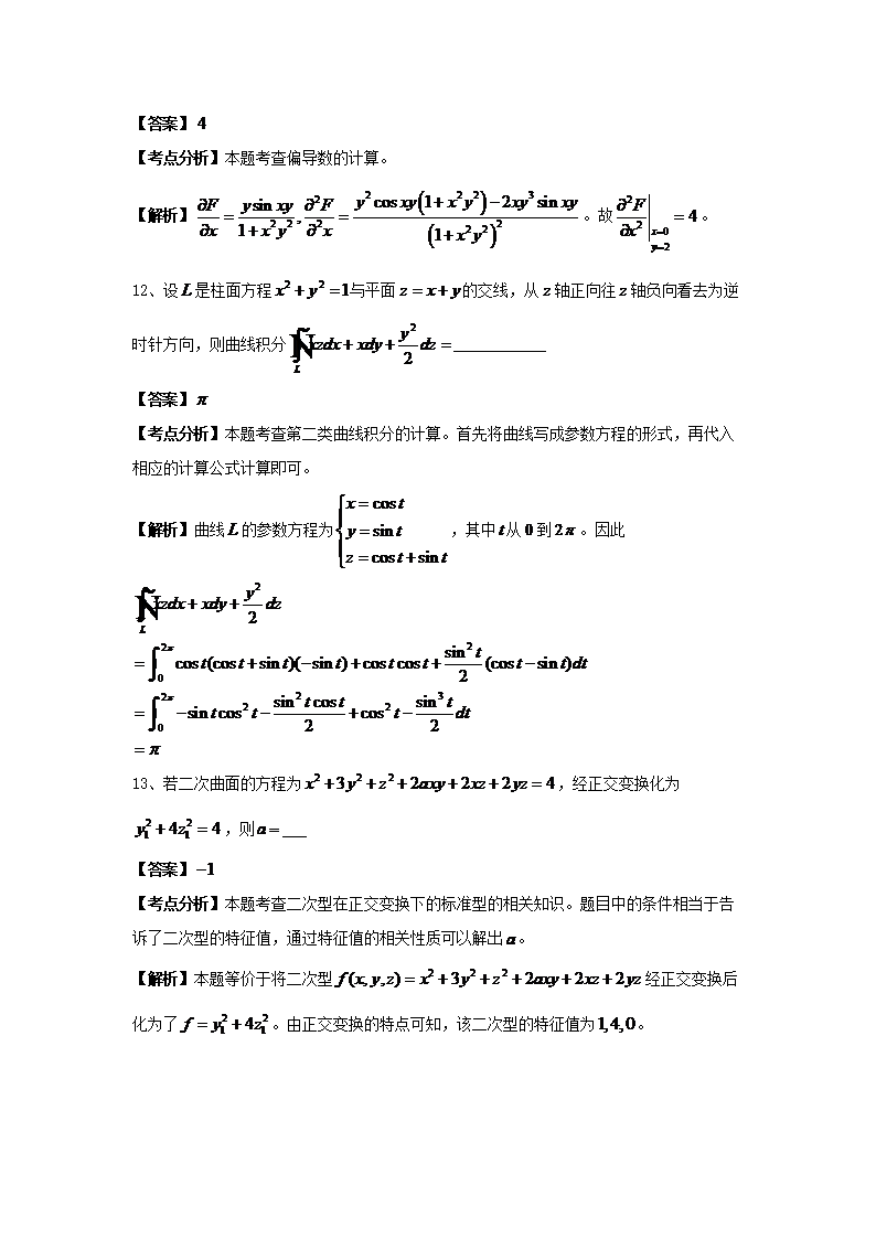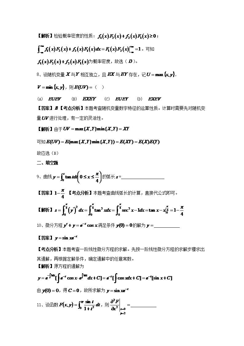 【文档名称】 2011北京考研数学一真题及答案(Word版).doc