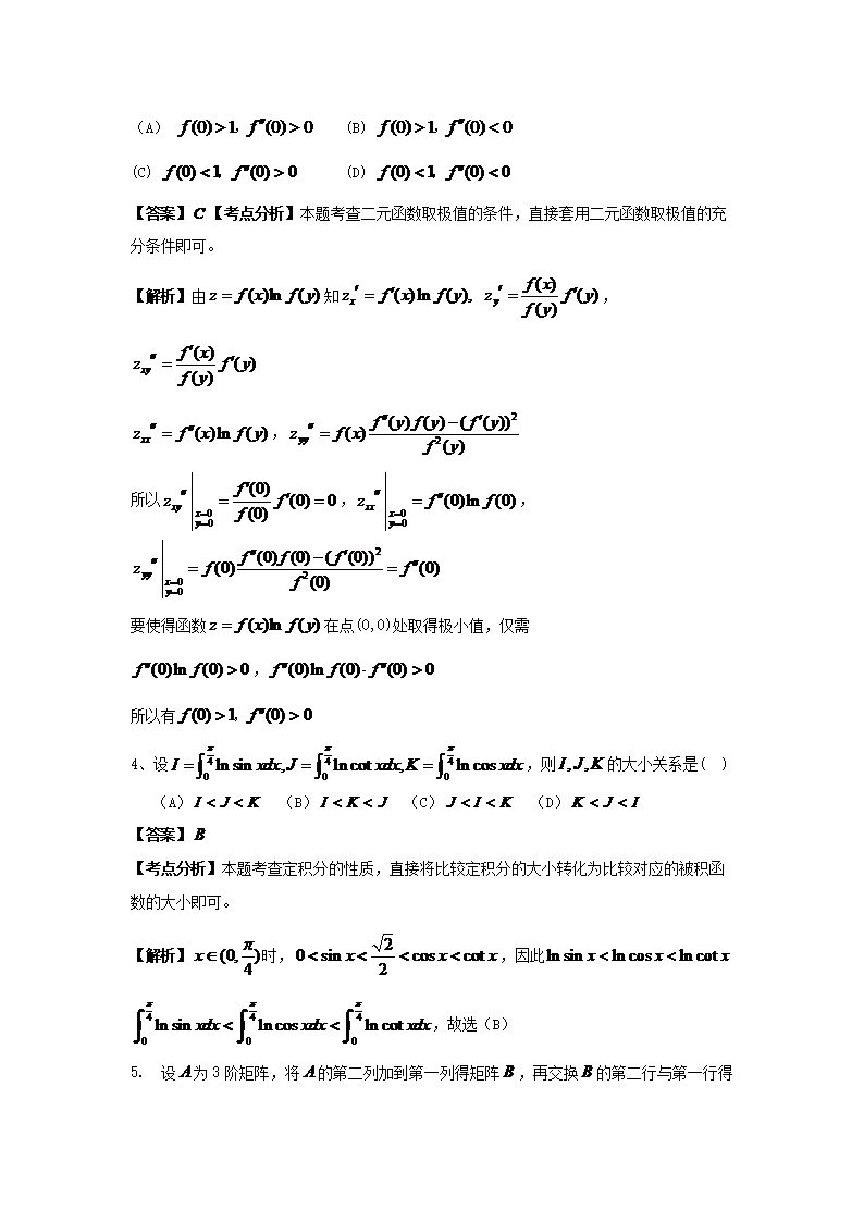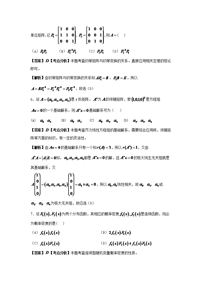 【文档预览】 无忧考网整理发布2011北京考研数学一真题及答案(Word版),前五页预览如下: