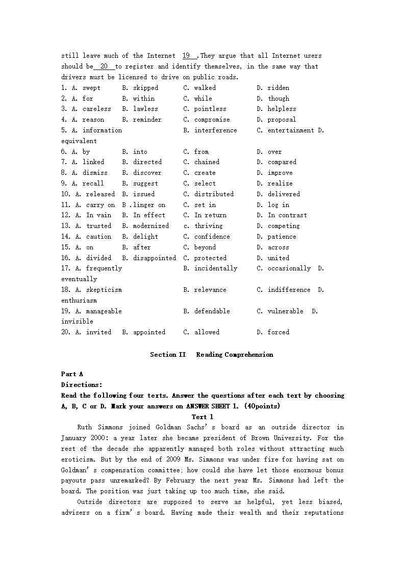 【文档名称】 2011北京考研英语二真题及答案(Word版).doc