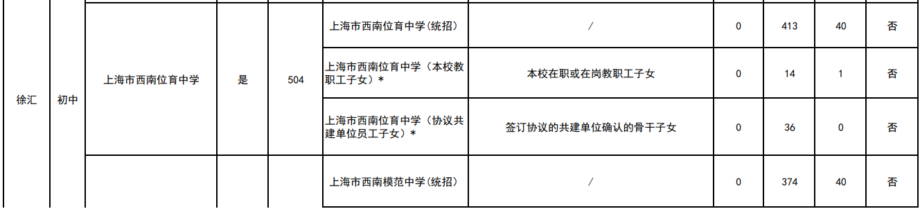 2023年上海徐汇区公办初中招生结果公布