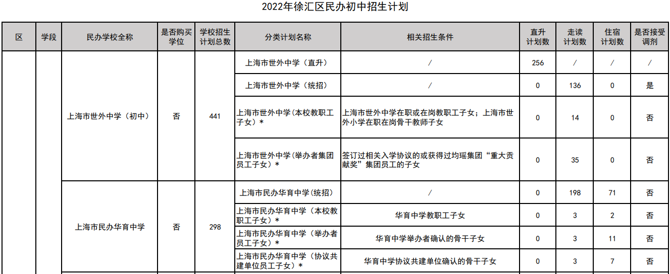 2022年上海徐汇区民办初中招生计划
