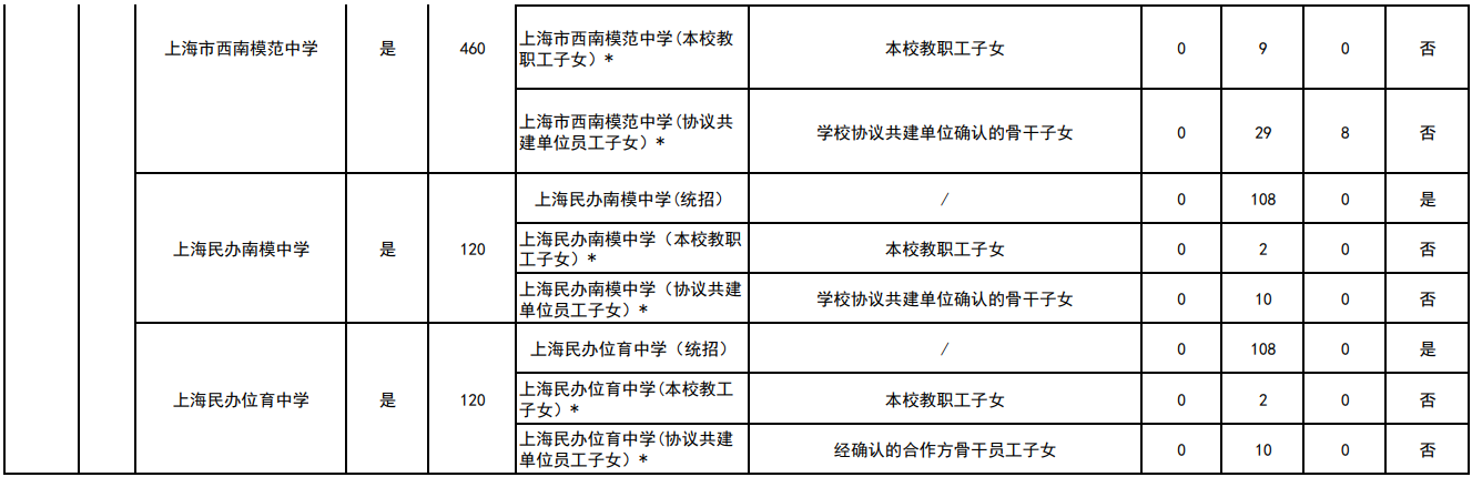 2023年上海徐汇区民办初中分类招生计划一览表