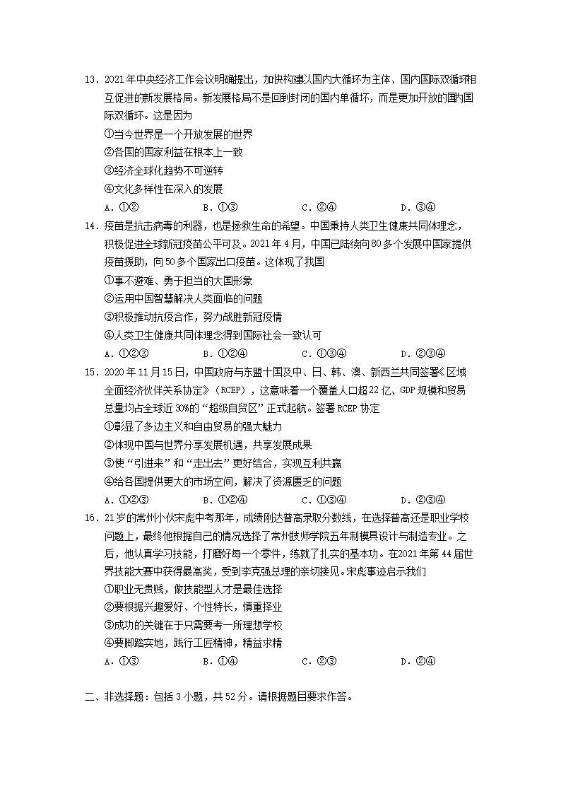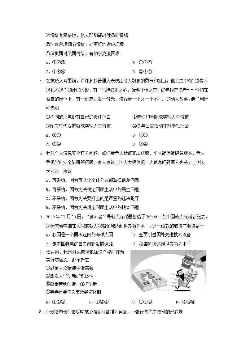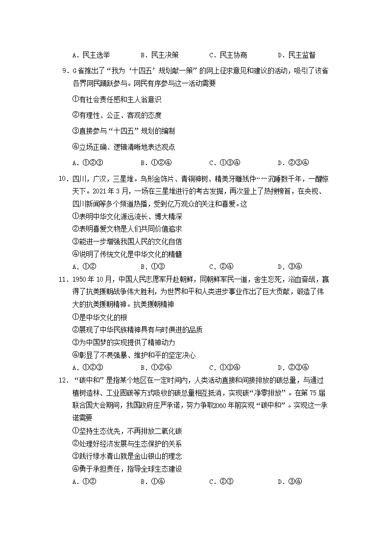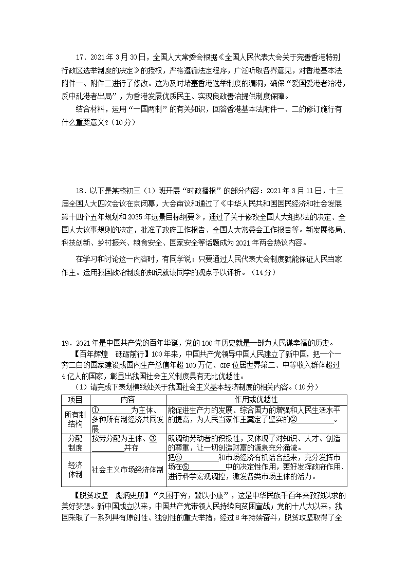 【文档名称】 2021年四川省宜宾市中考政治真题及答案(Word版).doc