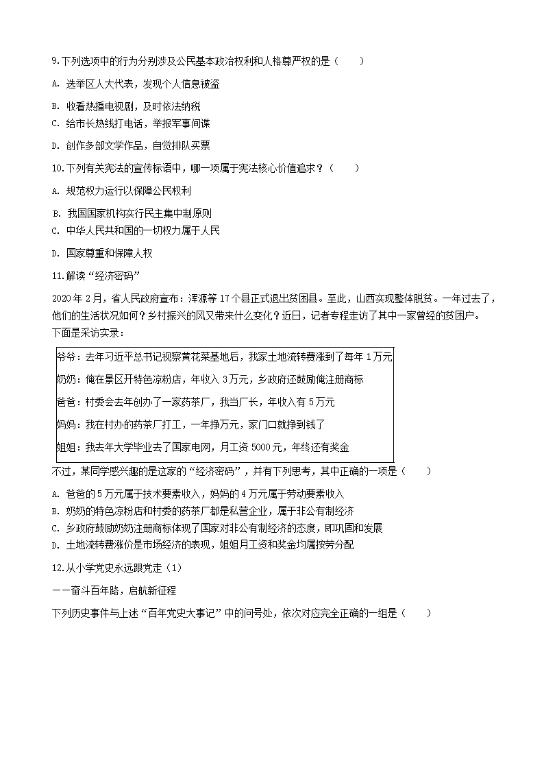 【文档名称】 2021年山西晋城中考政治真题及答案(Word版).doc