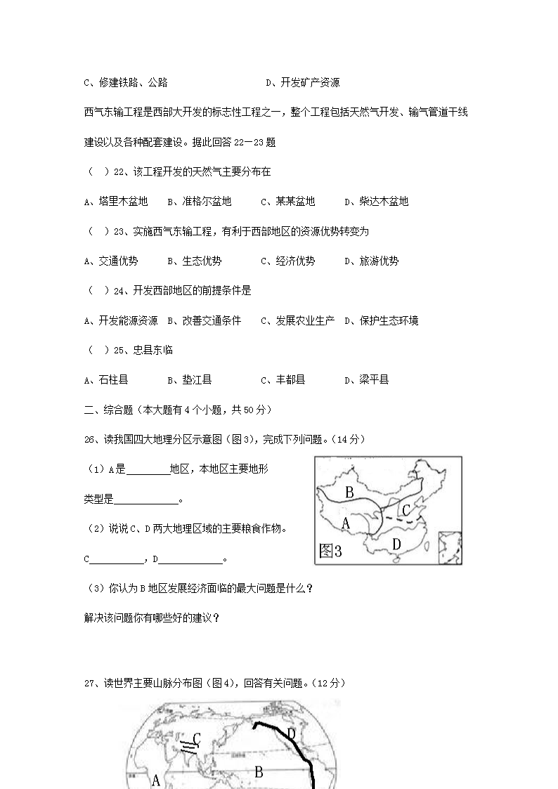 【文档名称】 2012年重庆万州中考地理真题及答案(Word版).doc