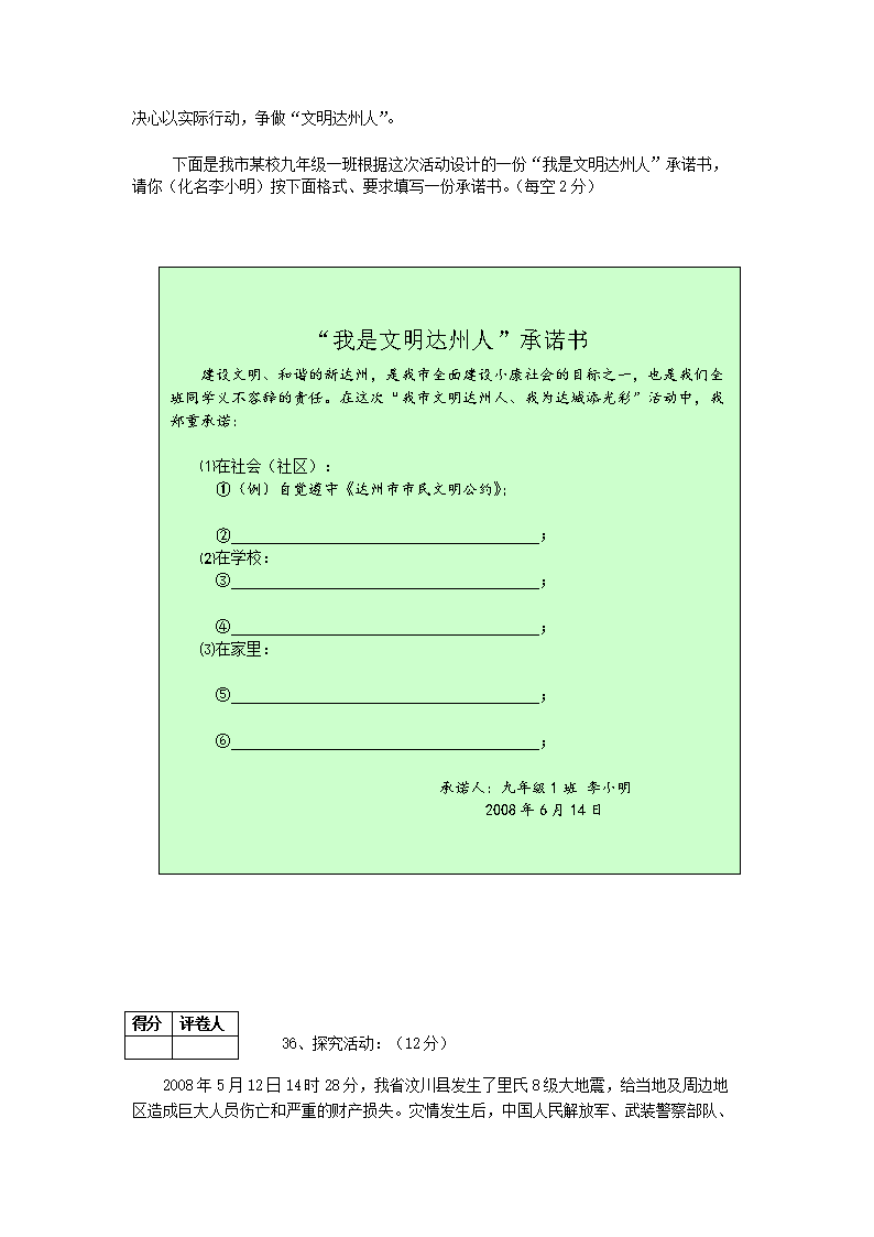 【文档名称】 2008年四川省达州市中考政治真题及答案(Word版).doc