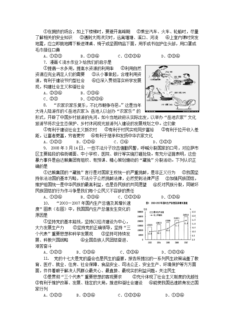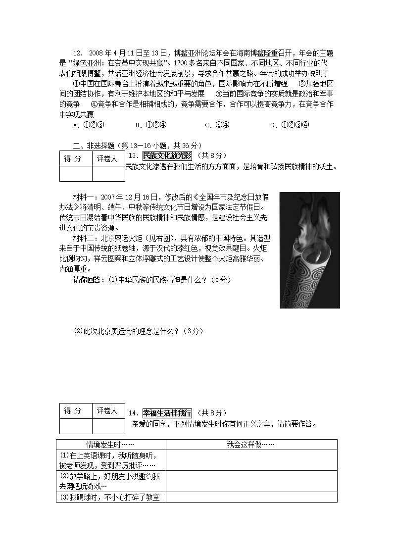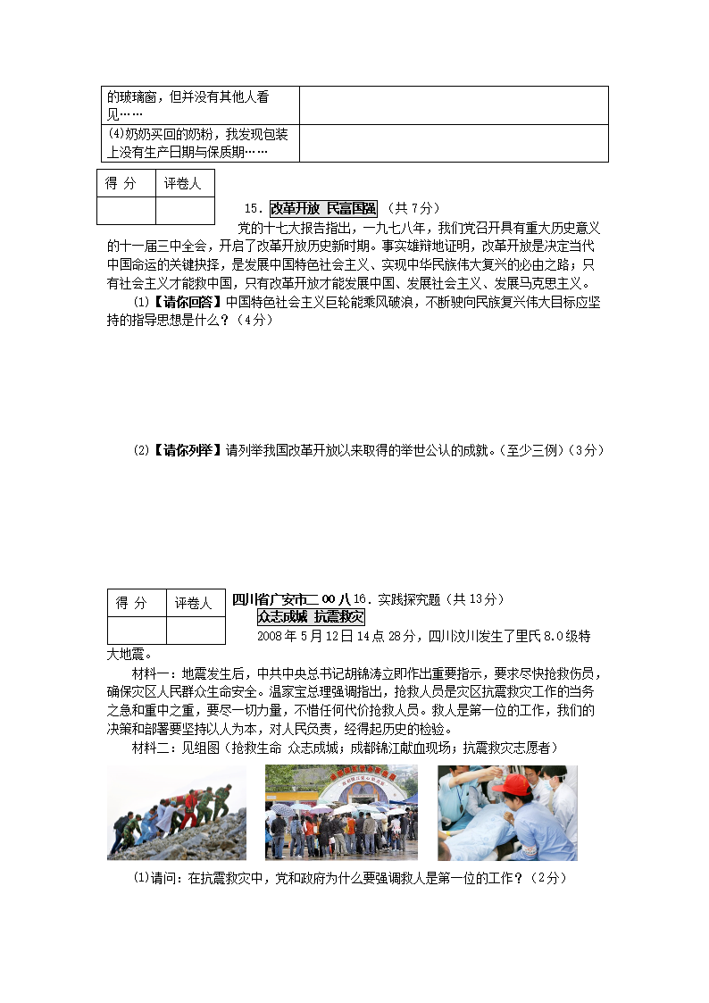 【文档名称】 2008年四川省广安市中考政治真题及答案(Word版).doc