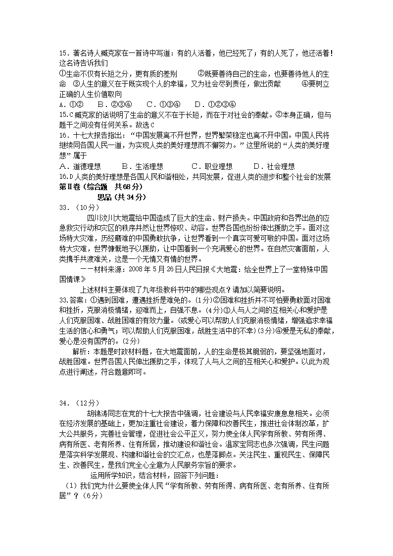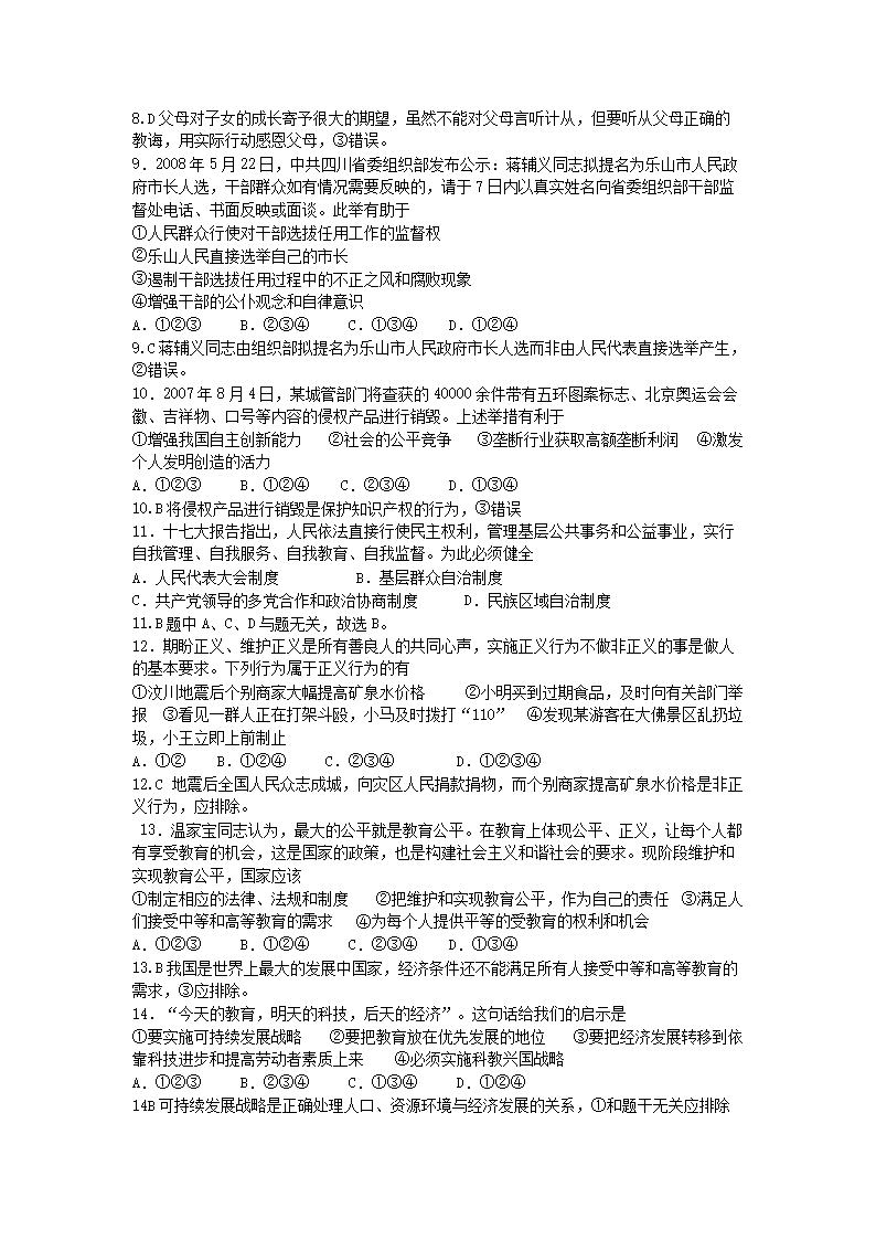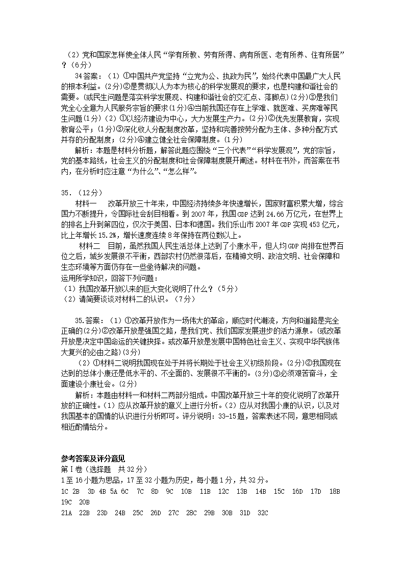 【文档名称】 2008年四川省乐山市中考政治真题及答案(Word版).doc