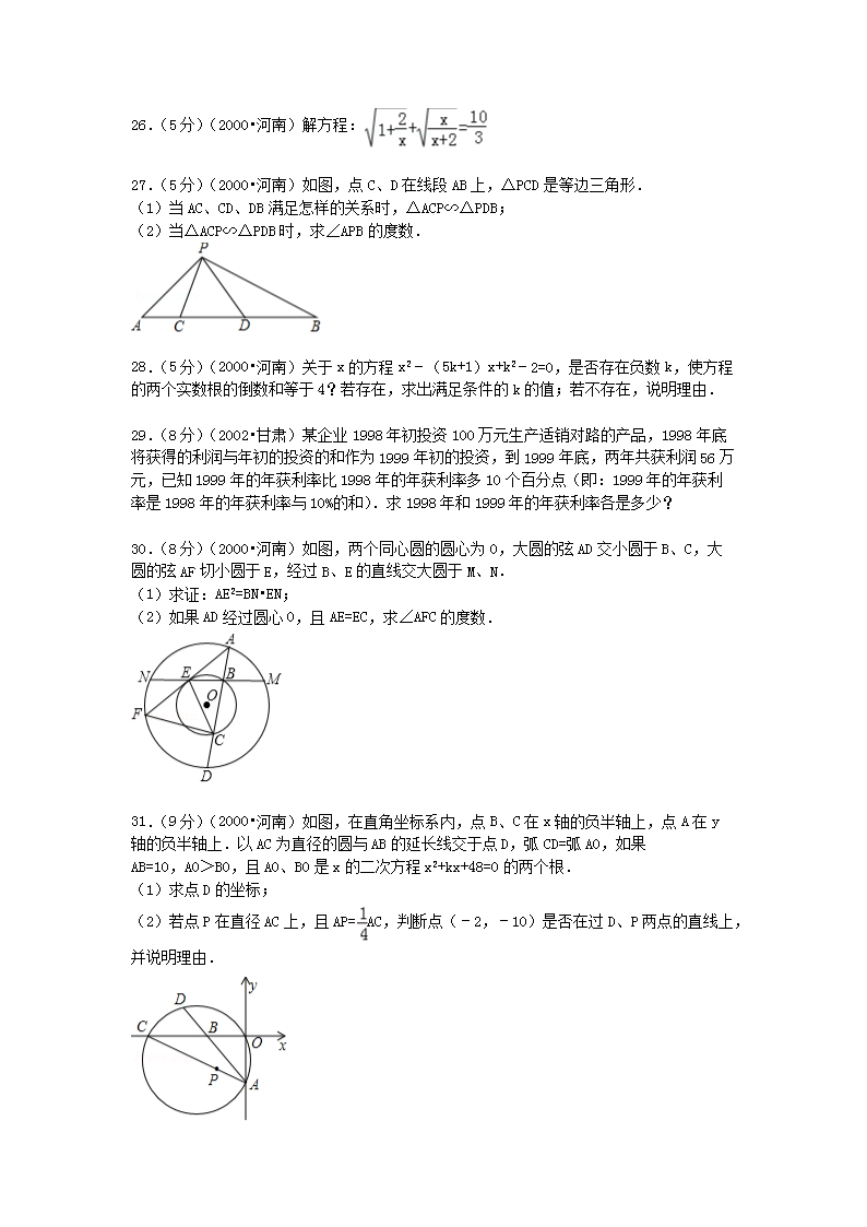 【文档名称】 2000年河南三门峡中考数学真题及答案(Word版).doc