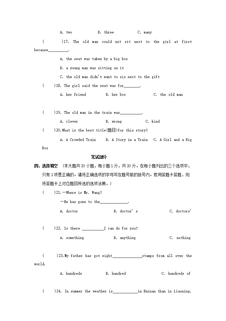【文档名称】 2001年广东省惠州市中考英语真题及答案(Word版).doc