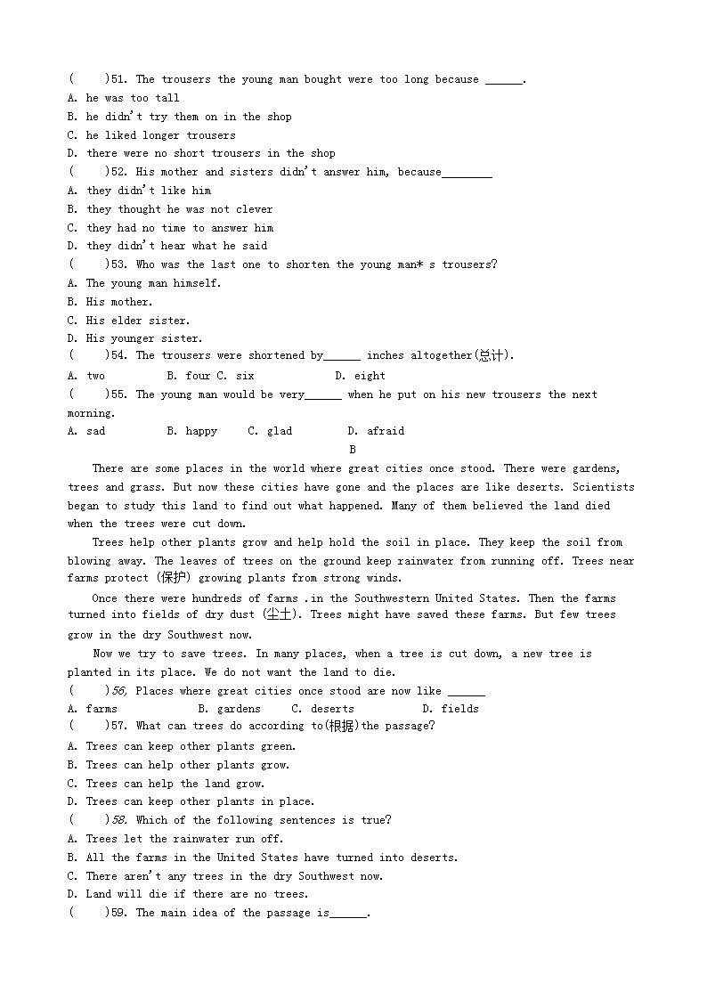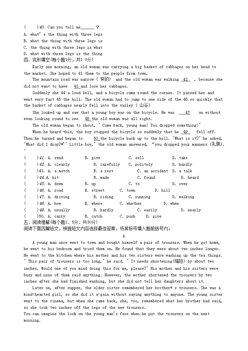 【文档预览】 无忧考网整理发布2003年河南安阳中考英语真题及答案(Word版),前五页预览如下: