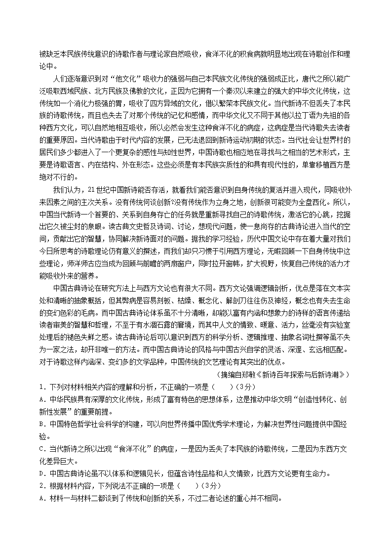【文档名称】 2022年湖北高考语文真题及答案(Word版).doc