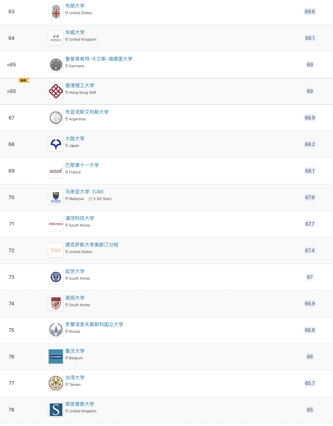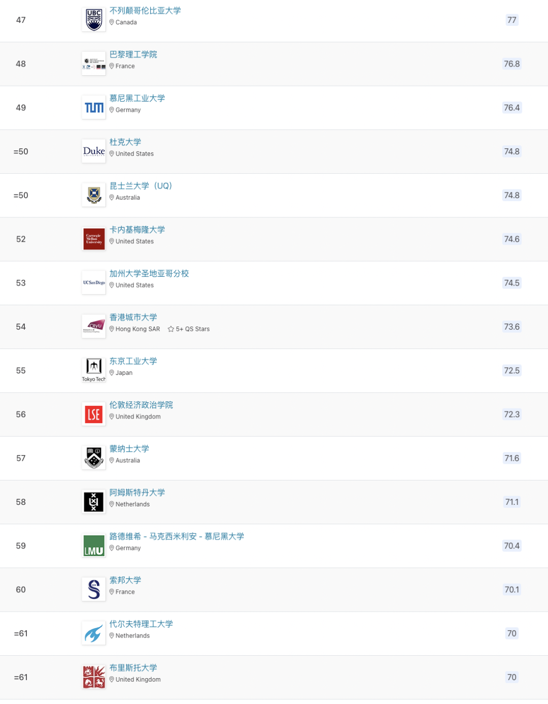总体来说,这一次共有71所中国大陆大学上榜,相较去年的榜单多出13所。