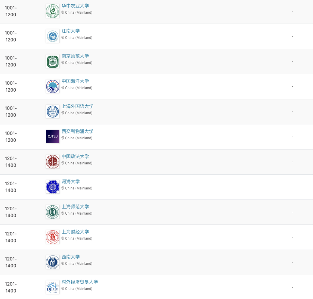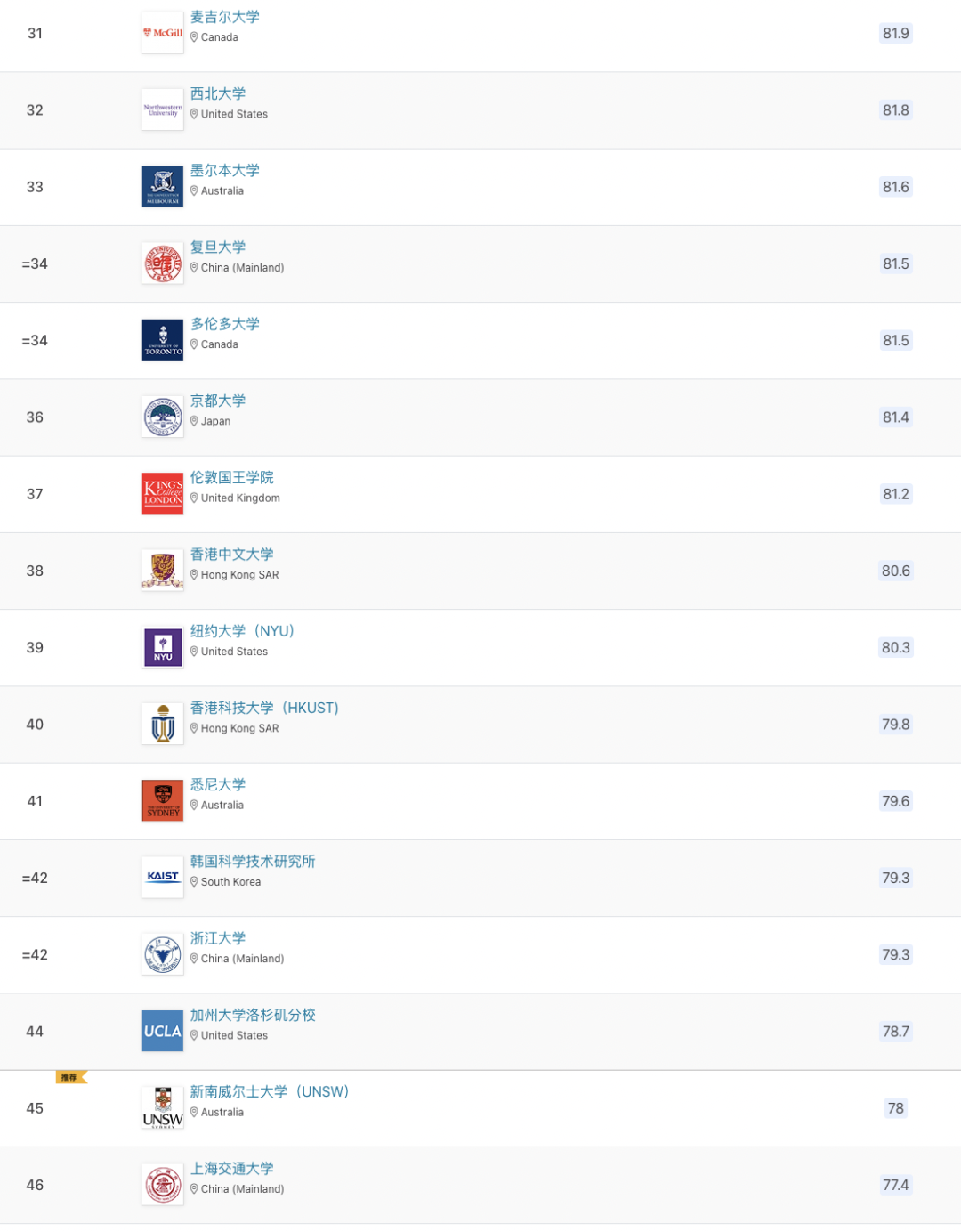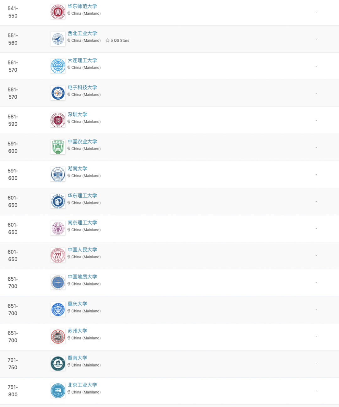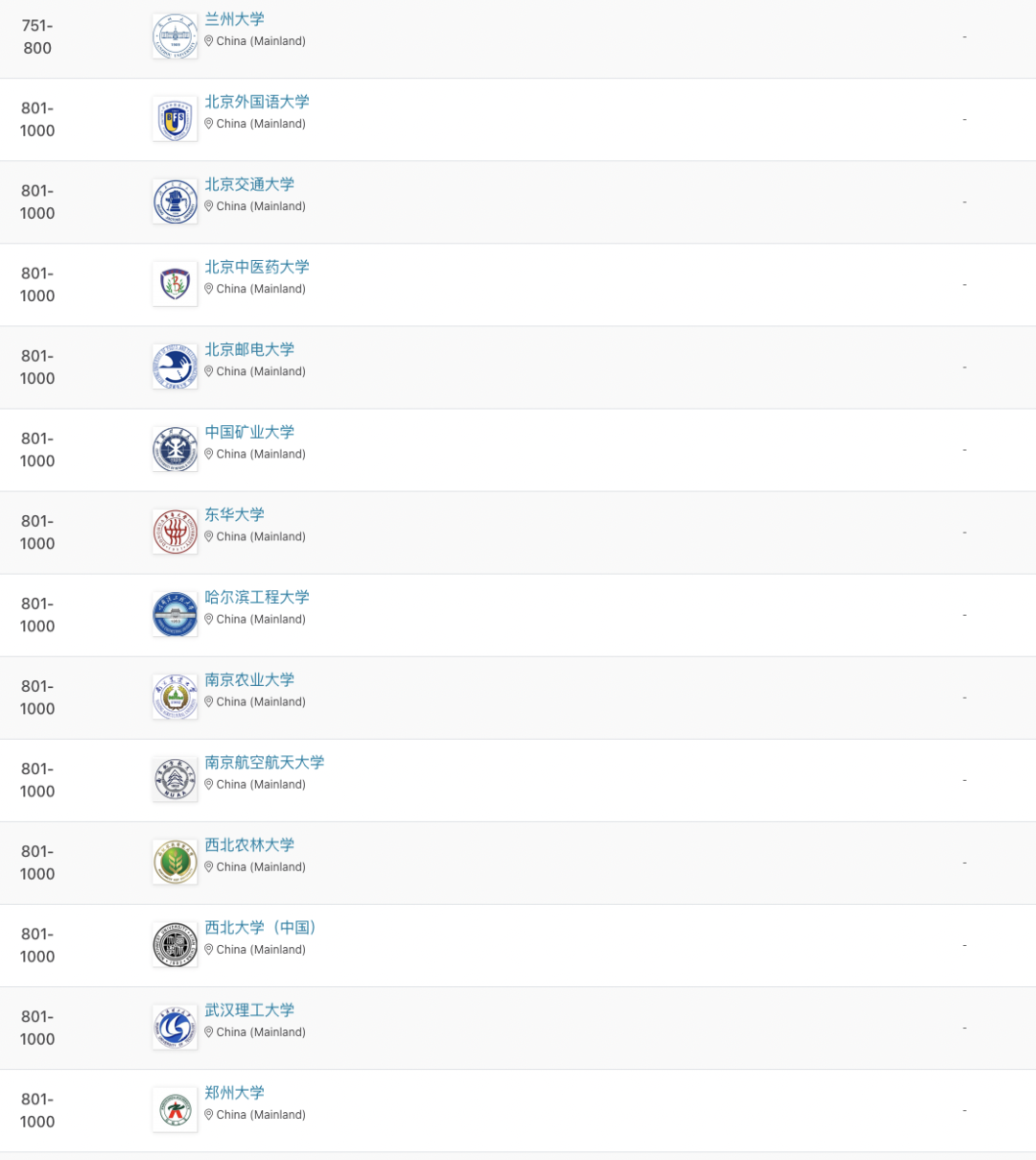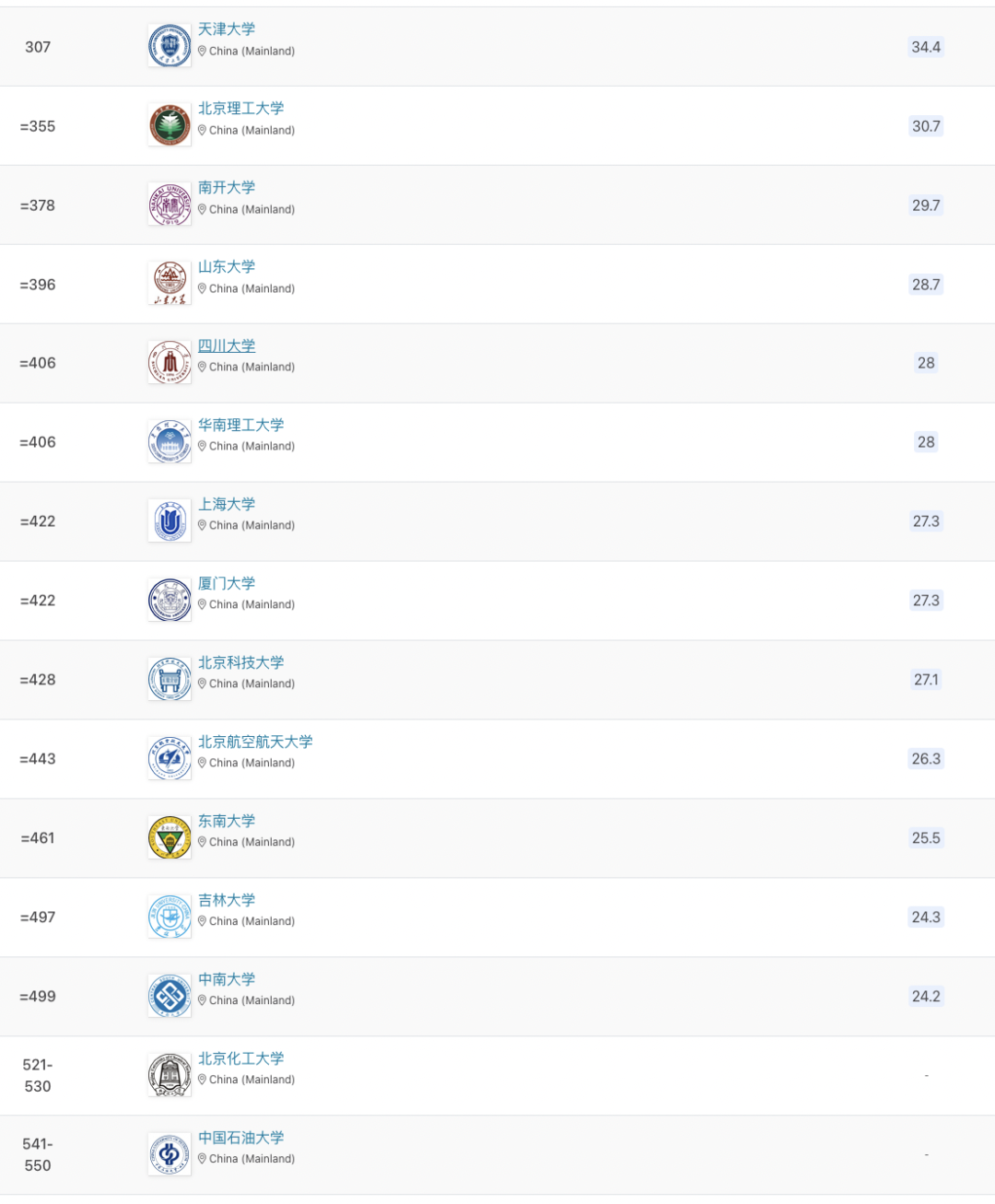 除清北外,还有很多大陆大学在本次排名中取得非常好的成绩: