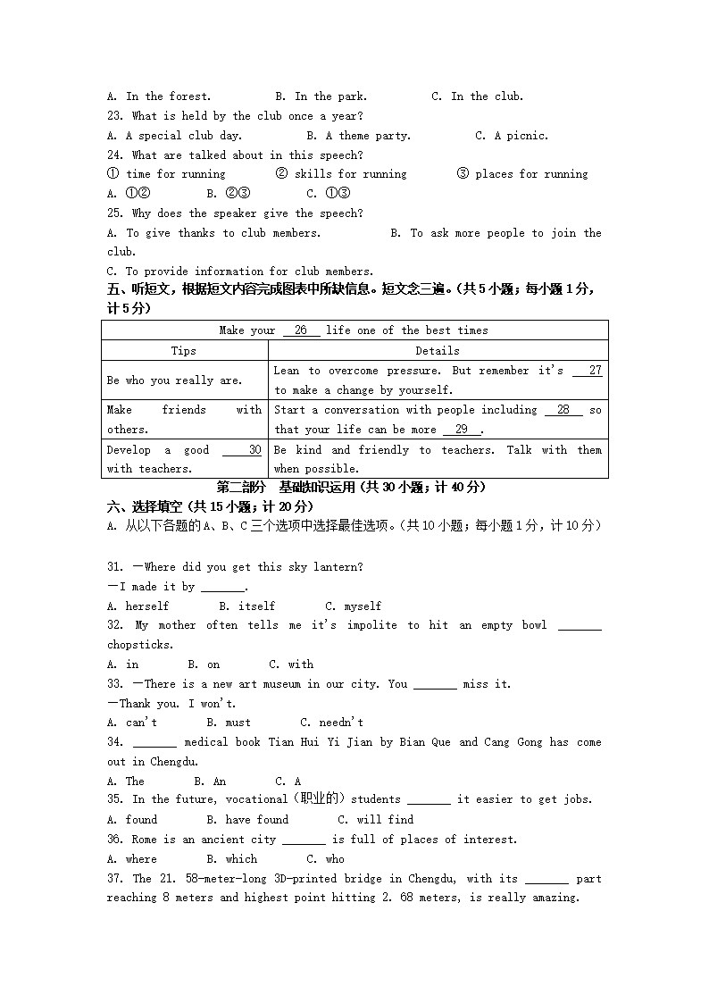 【文档预览】 无忧考网整理发布2022年四川成都中考英语真题及答案(Word版),前五页预览如下: