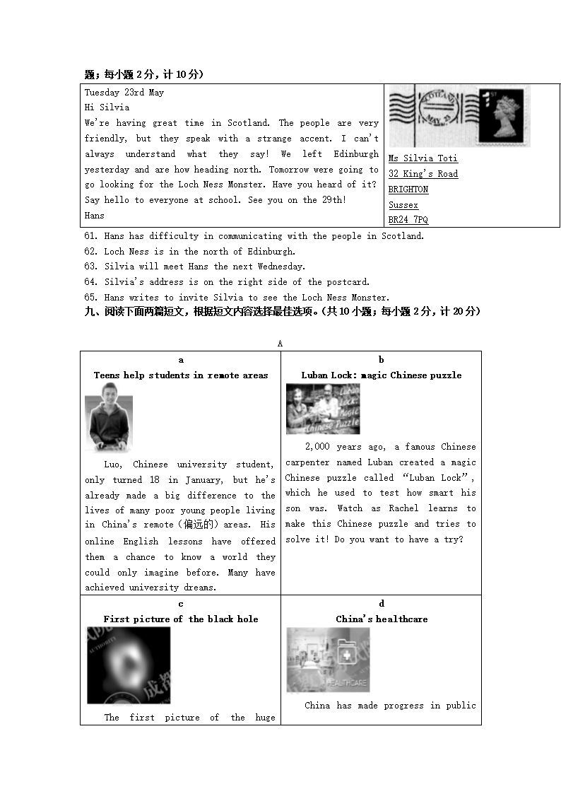 【文档名称】 2022年四川成都中考英语真题及答案(Word版).doc