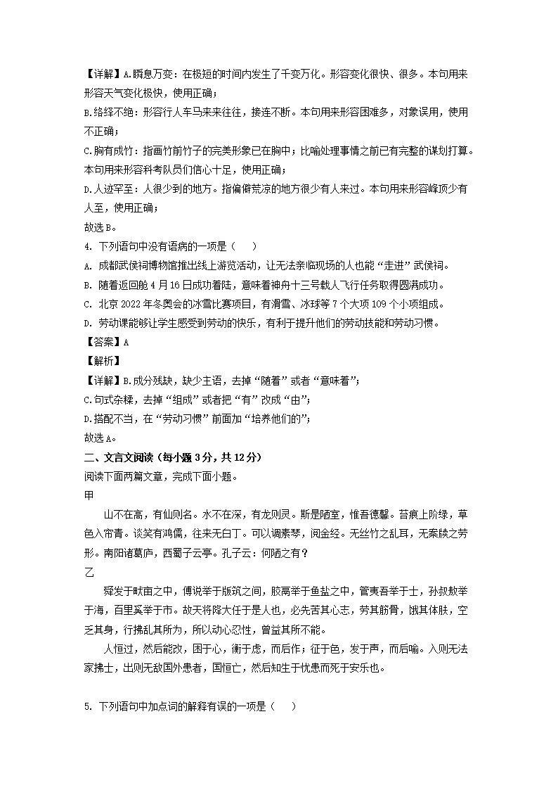 【文档名称】 2022年四川成都中考语文真题及答案(Word版).doc